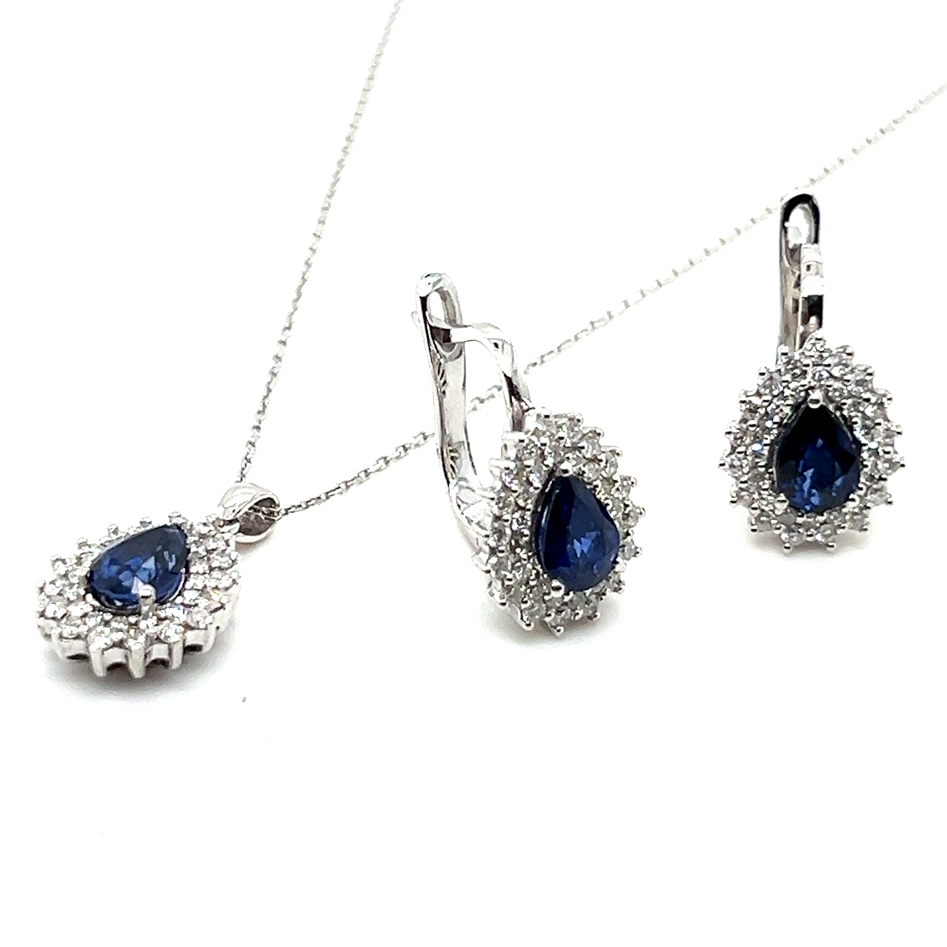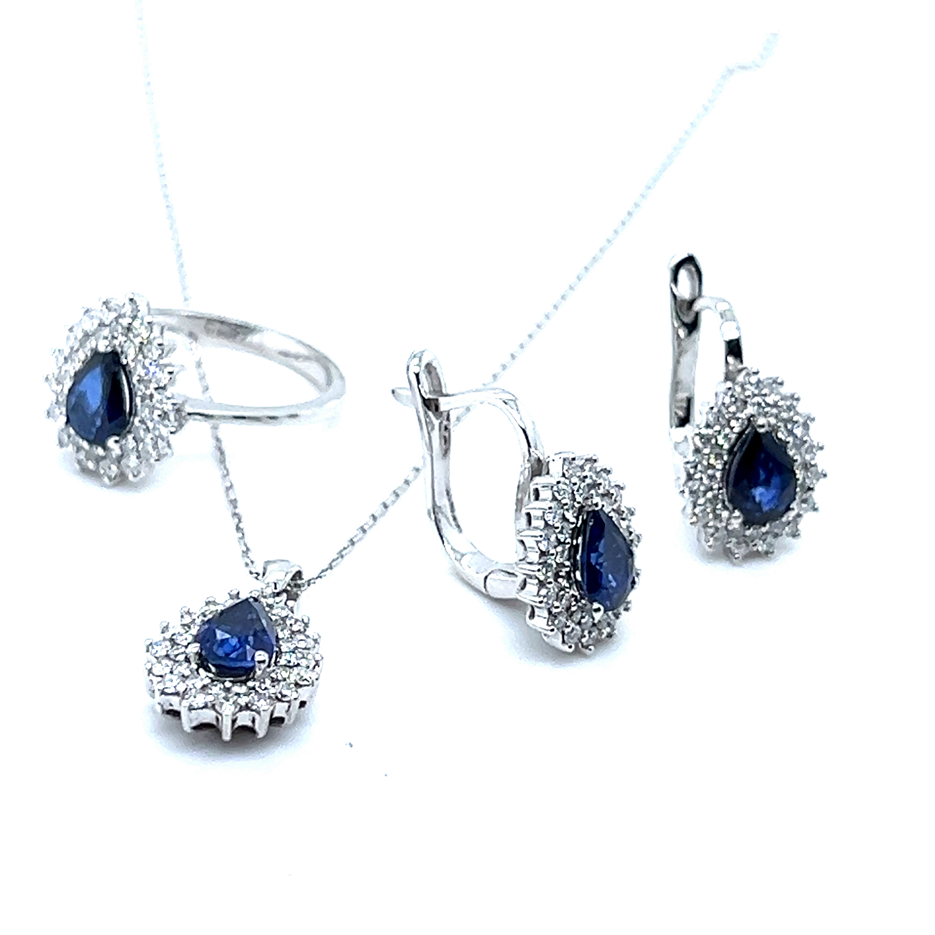 Oбеци от "Jacklin hugasian" в бяло злато с диаманти и сапфир.