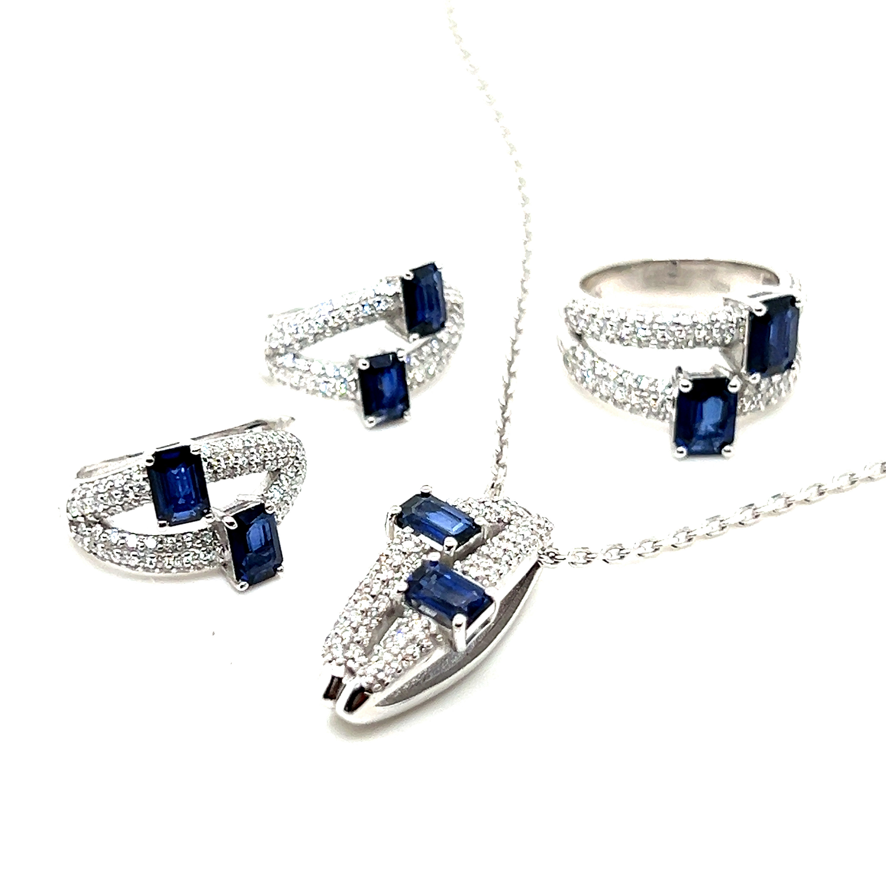 Oбеци от "Jacklin hugasian" в бяло злато с диаманти и сапфир.