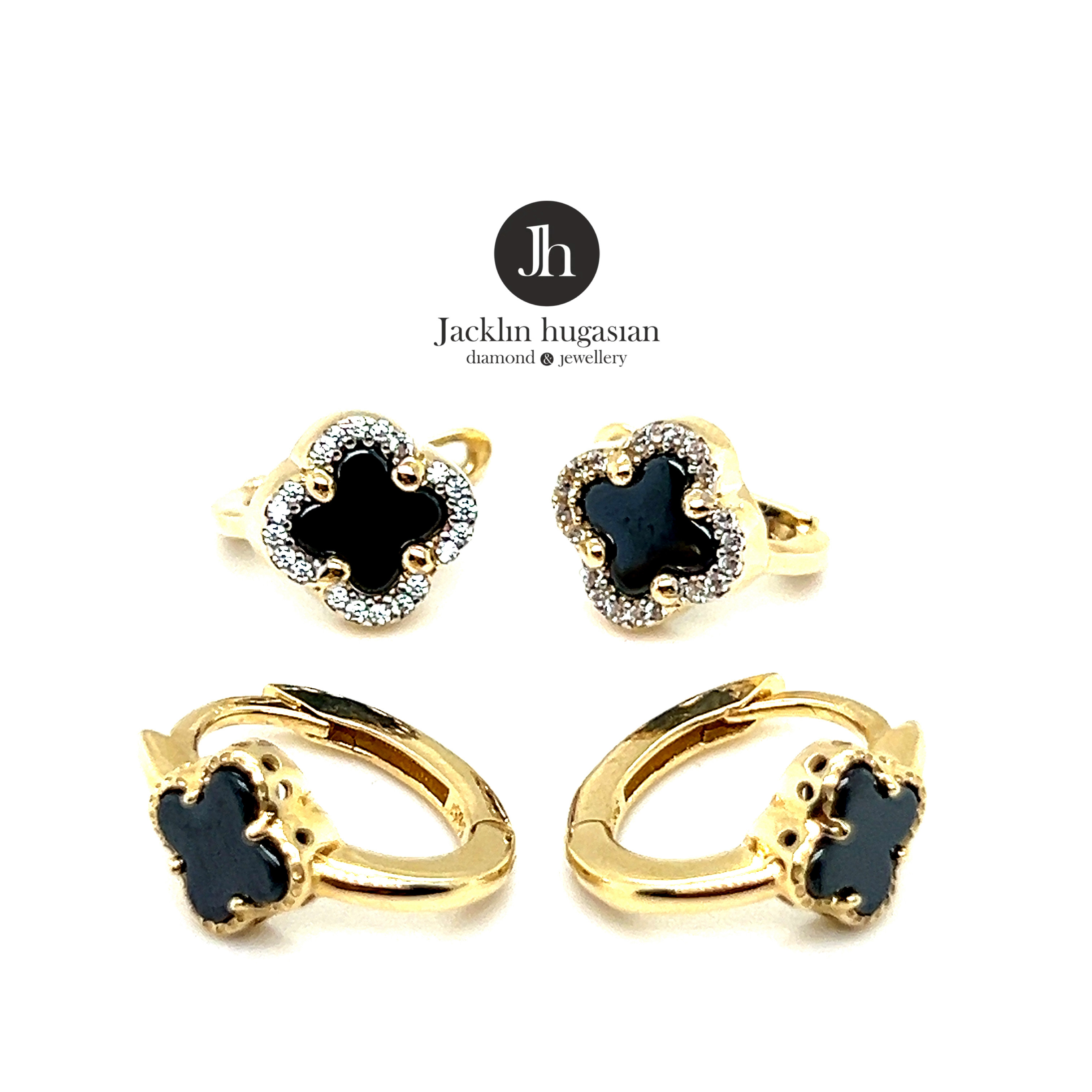 Обеци от “Jacklin hugasian” в жълто злато с оникс.