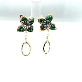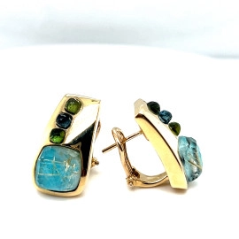 Обеци от “Jacklin ” в жълто злато с "Косите на Венера",перидот и топаз