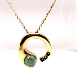 Колие от “Jacklin ” в жълто злато с перла,аквамарин,турмалин и циркони