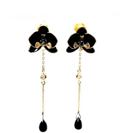 Обеци от “Jacklin ” жълто и черно злато ,диамант,сапфир и оникс