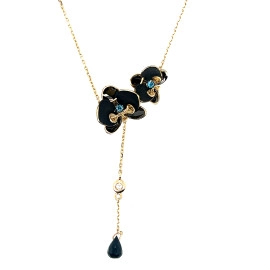Колие от “Jacklin ” жълто и черно злато със сапфир.