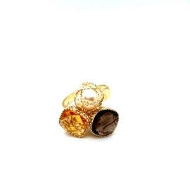 Пръстен от “Jacklin ” в жълто злато с опушен топаз, жълт топаз и перла