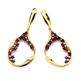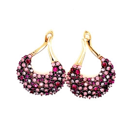 Обеци от “Jacklin ” в жълто злато, със синтетичен рубин, розов кварц и цирконии