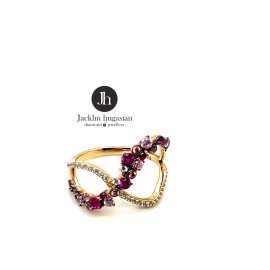 Пръстен от "Jacklin " в жълто злато с рубин, турмалин и цирконии