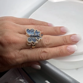 Пръстен от “Jacklin ” в жълто злато със синтетичен сапфир и цирконии