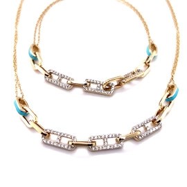 Комплект от “Jacklin ” в жълто злато гланц с цветен емайл и циркони