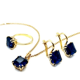 Комплект от “Jacklin ” в жълто злато със синтетичен сапфир