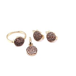 Комплект от “Jacklin ” в жълто злато с розов кварц и циркони