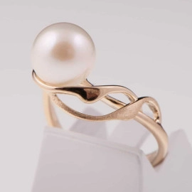 Пръстен от "Jacklin " в жълто злато с циркони и перла