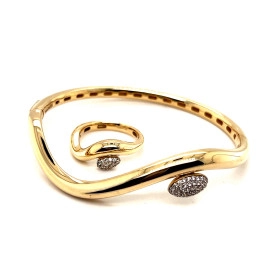 Комплект гривна и пръстен от “Jacklin ” в жълто злато гланц с циркони.