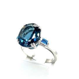 Пръстен от "Jacklin " в бяло злато с лондон топаз и сапфир