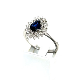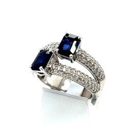 Пръстен от "Jacklin " в бяло злато със сапфир и диаманти.