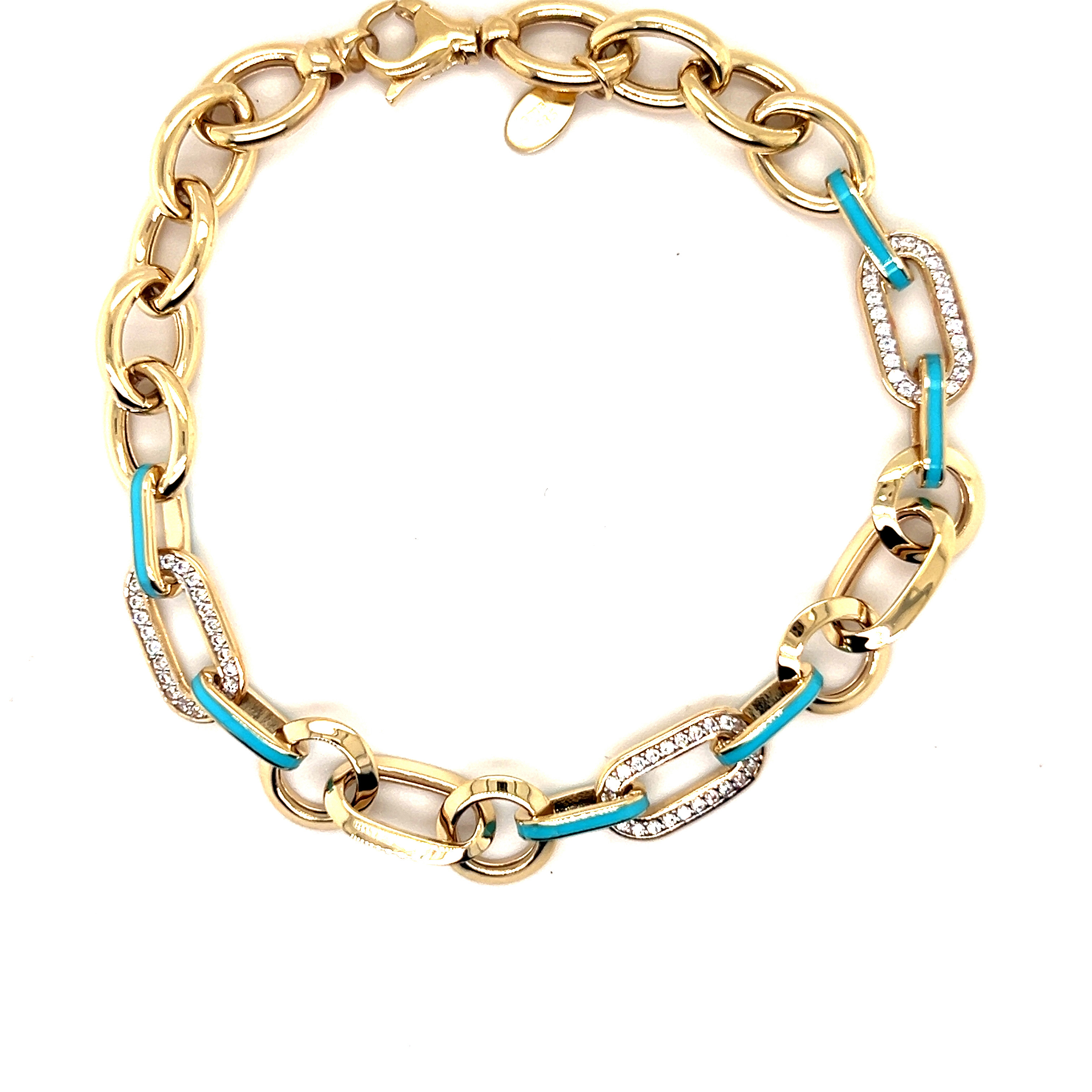 Гривна от “Jacklin hugasian” в жълто злато гланц с цветен емайл и цирконии.