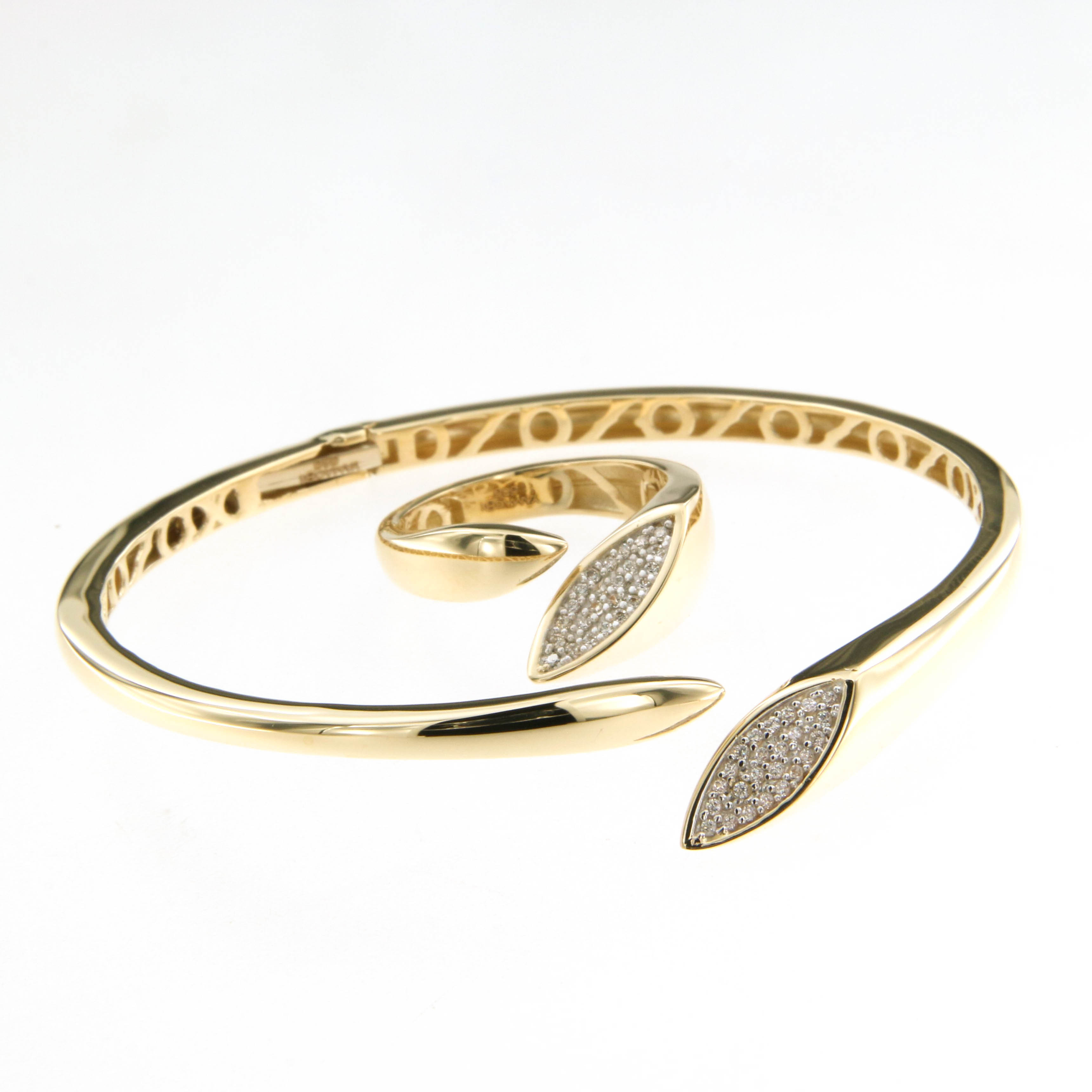 Гривна тип белезник и пръстен от “Jacklin hugasian” в жълто гланц с циркони.