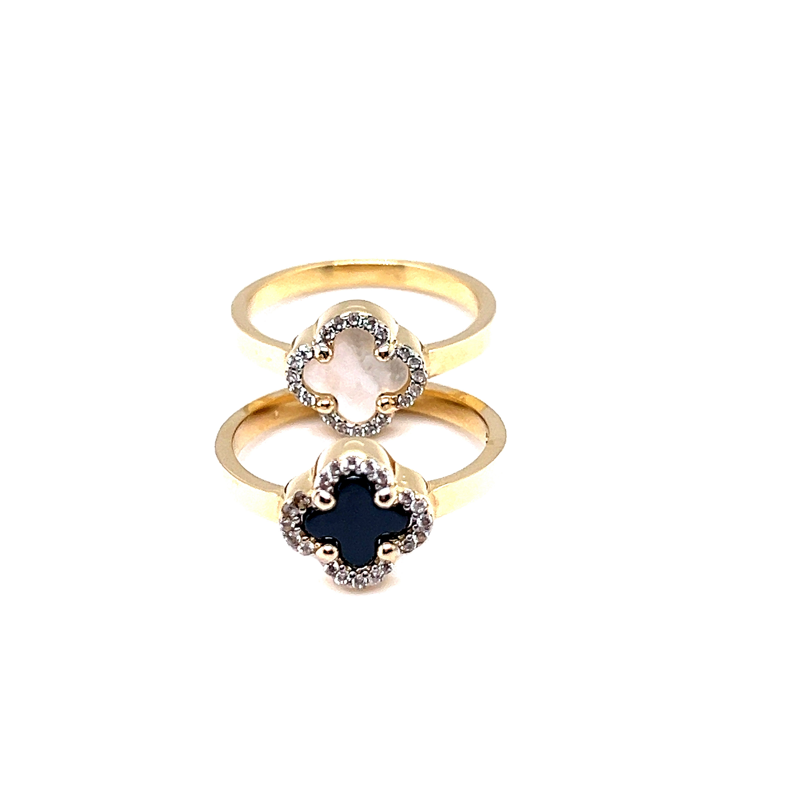 Пръстен от “Jacklin hugasian” в жълто злато с оникс и циркони.