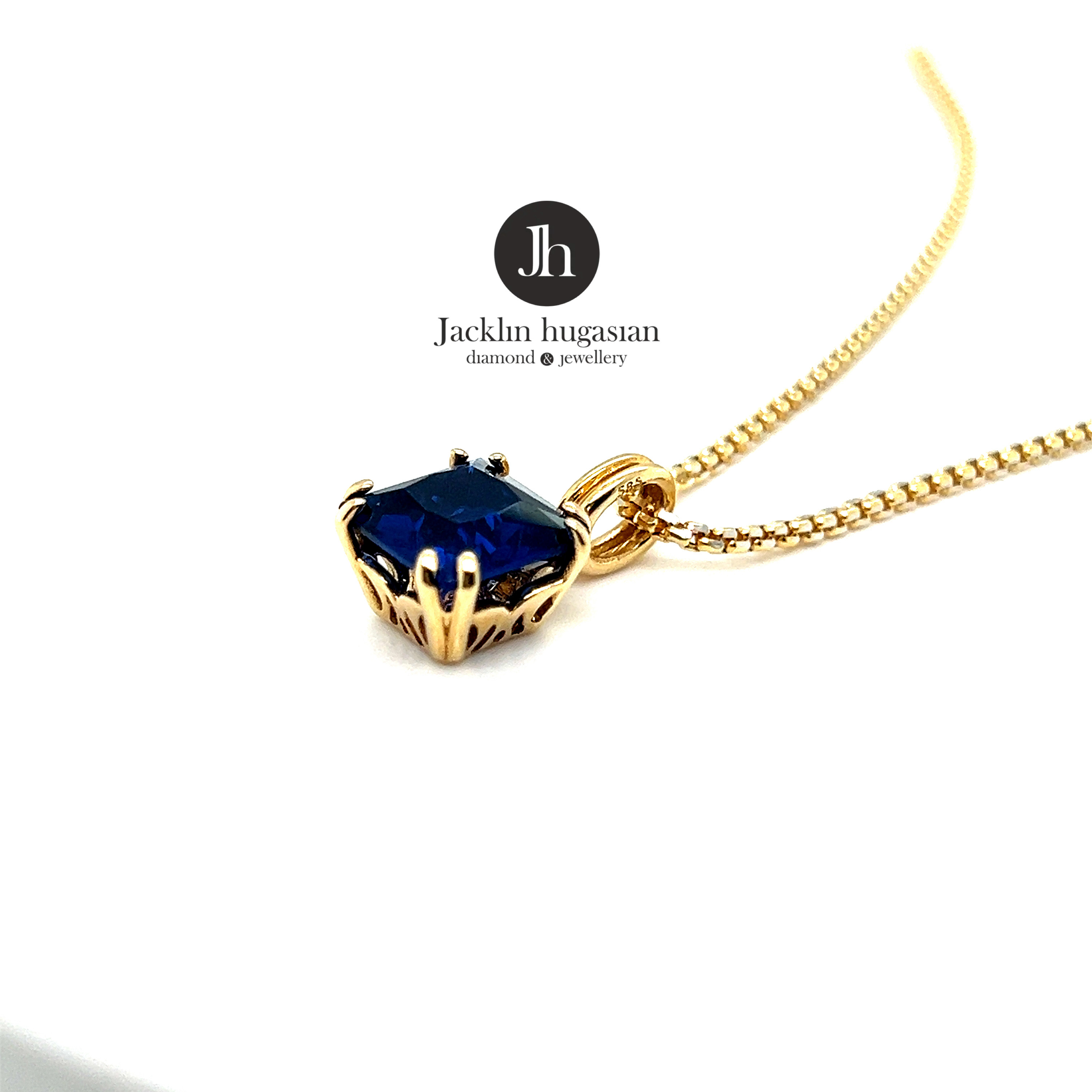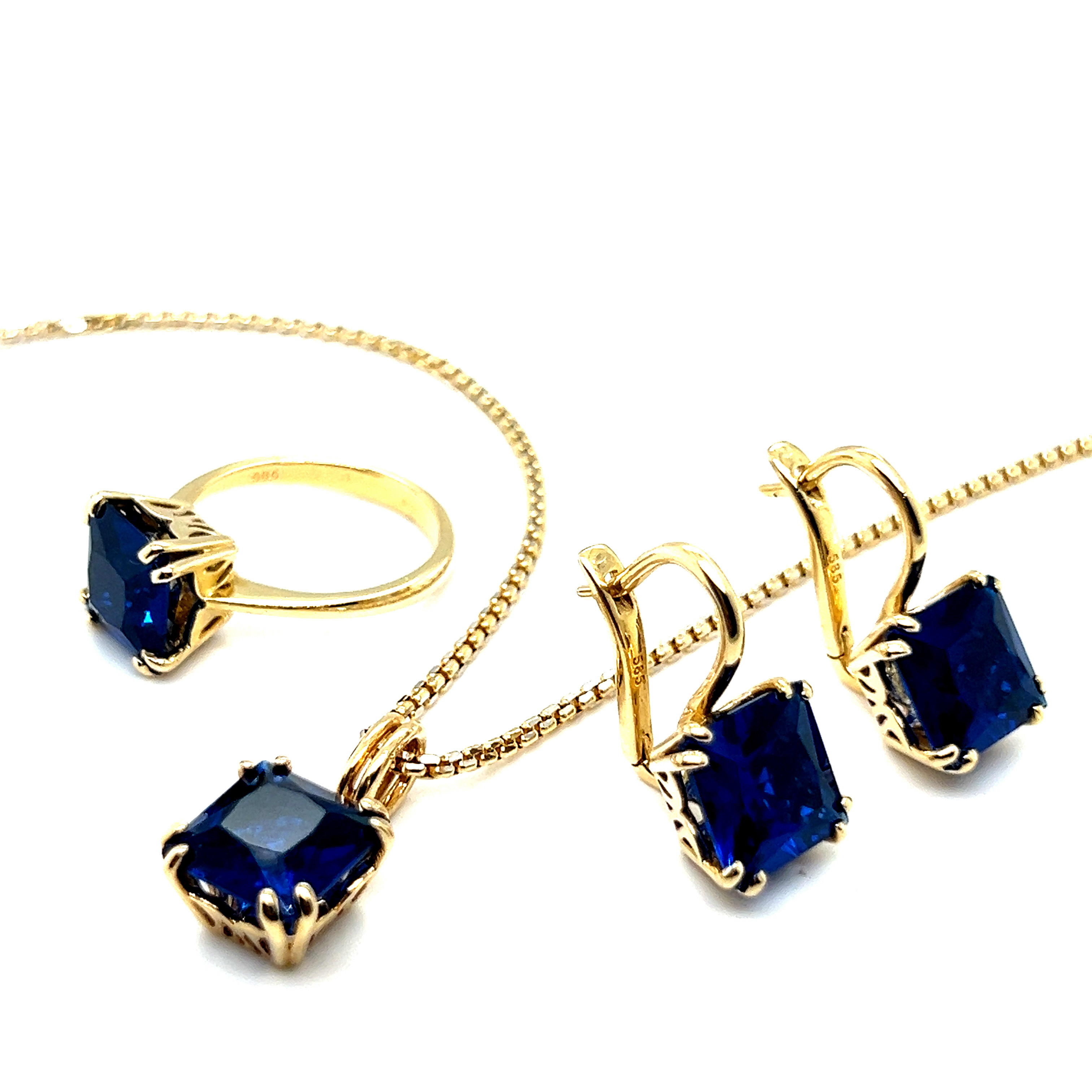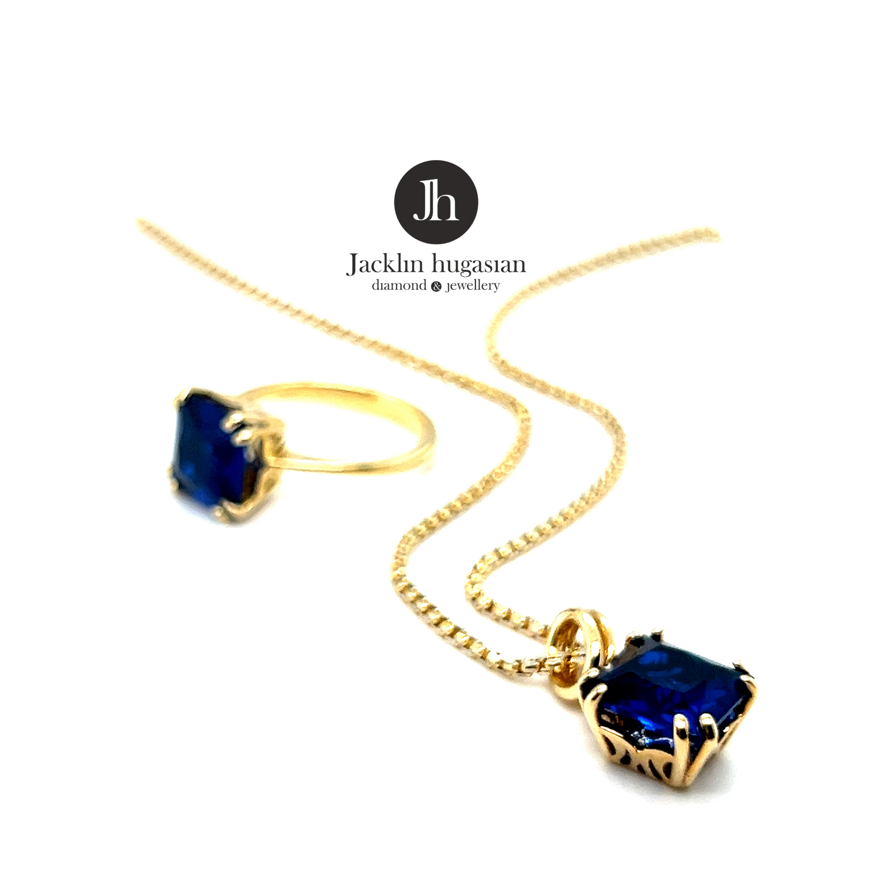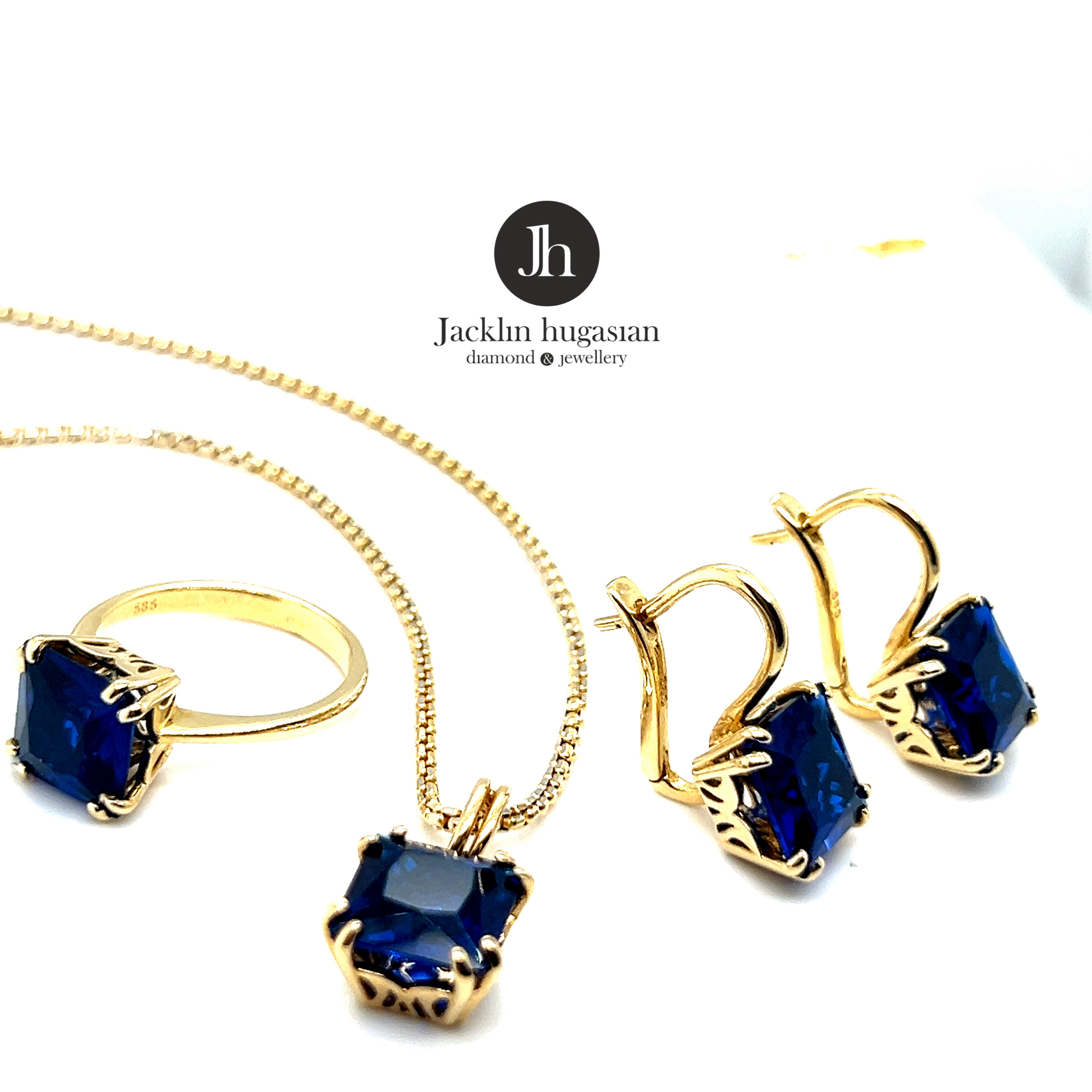 Комплект от “Jacklin hugasian” в жълто злато със синтетичен сапфир