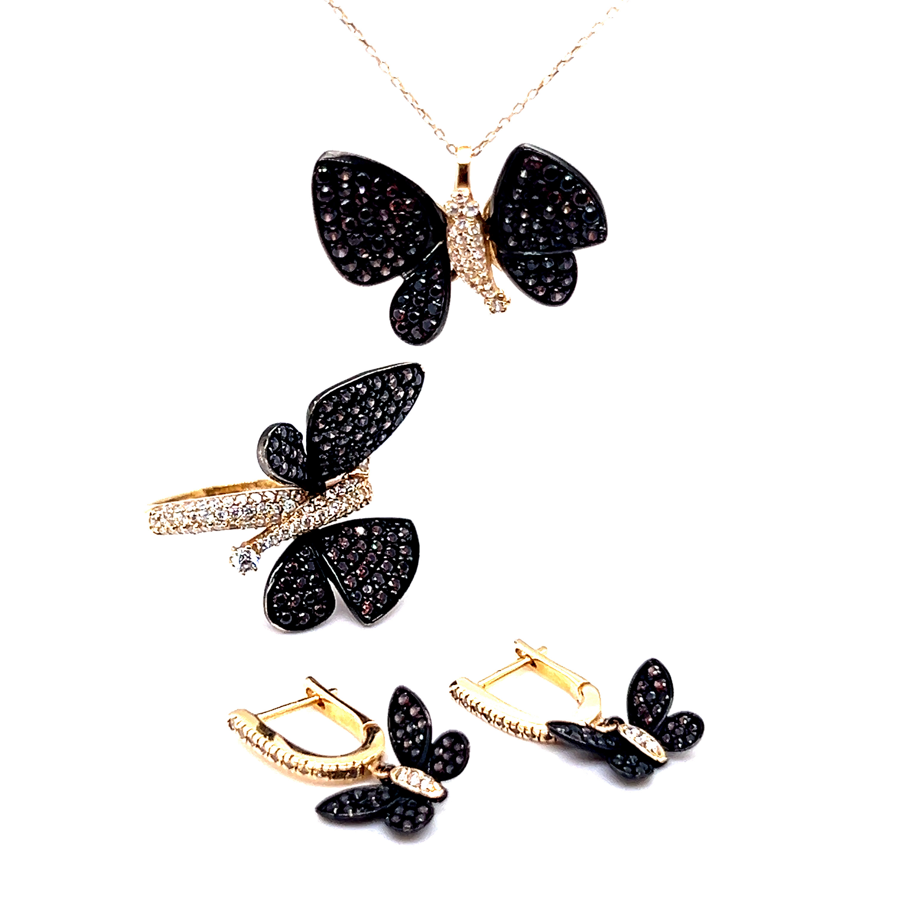 Комплект от “Jacklin hugasian” в жълто злато с опушен топаз и циркони.