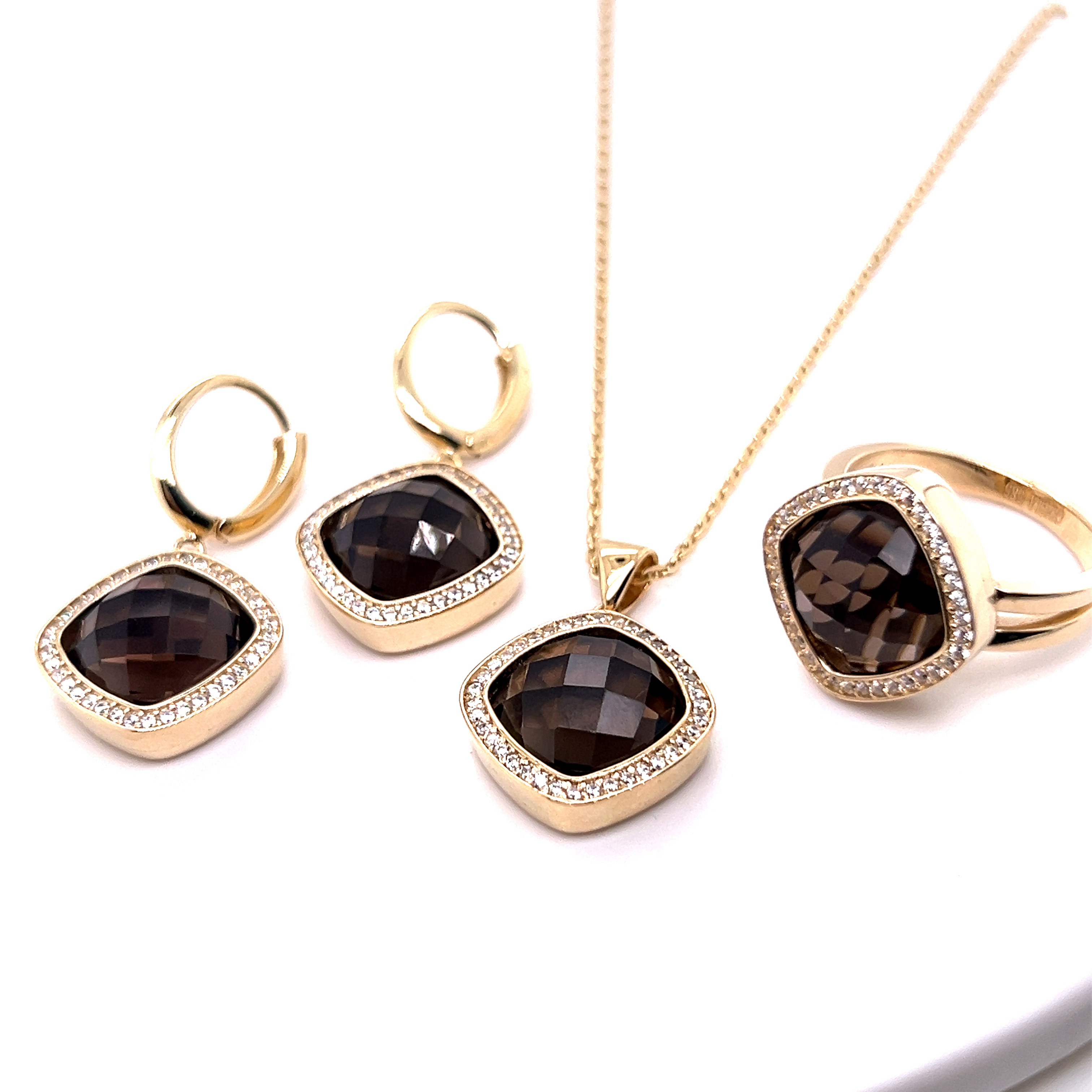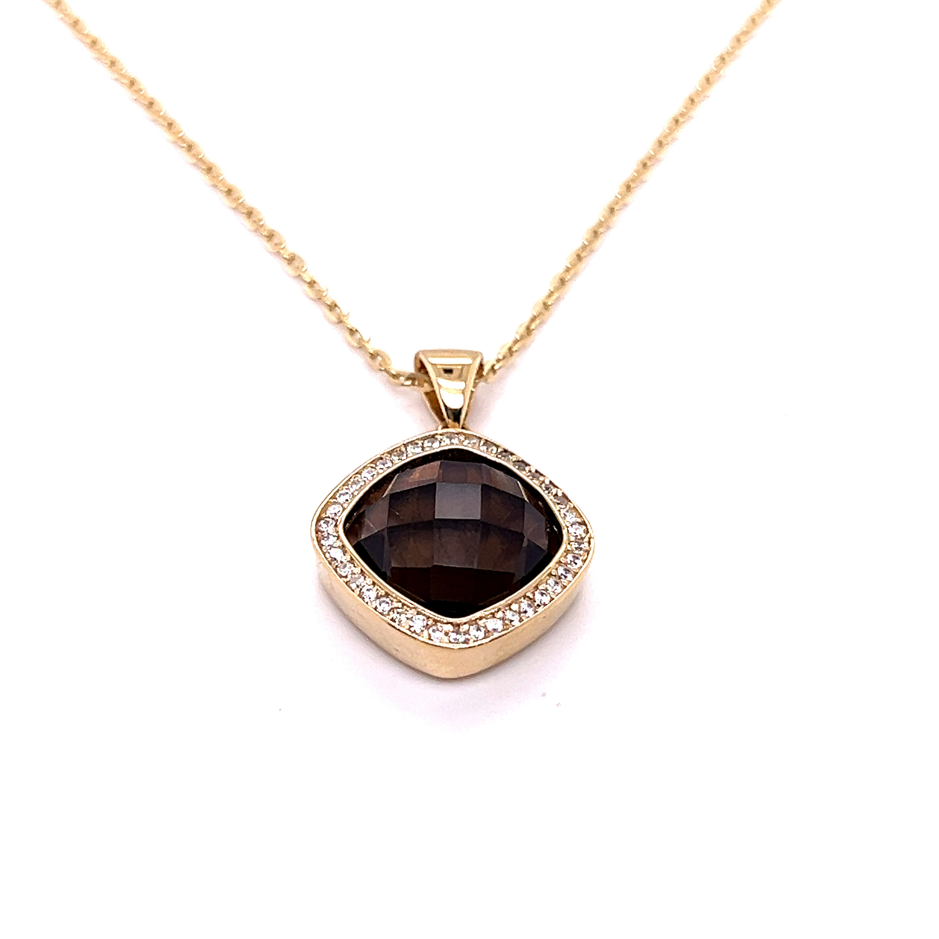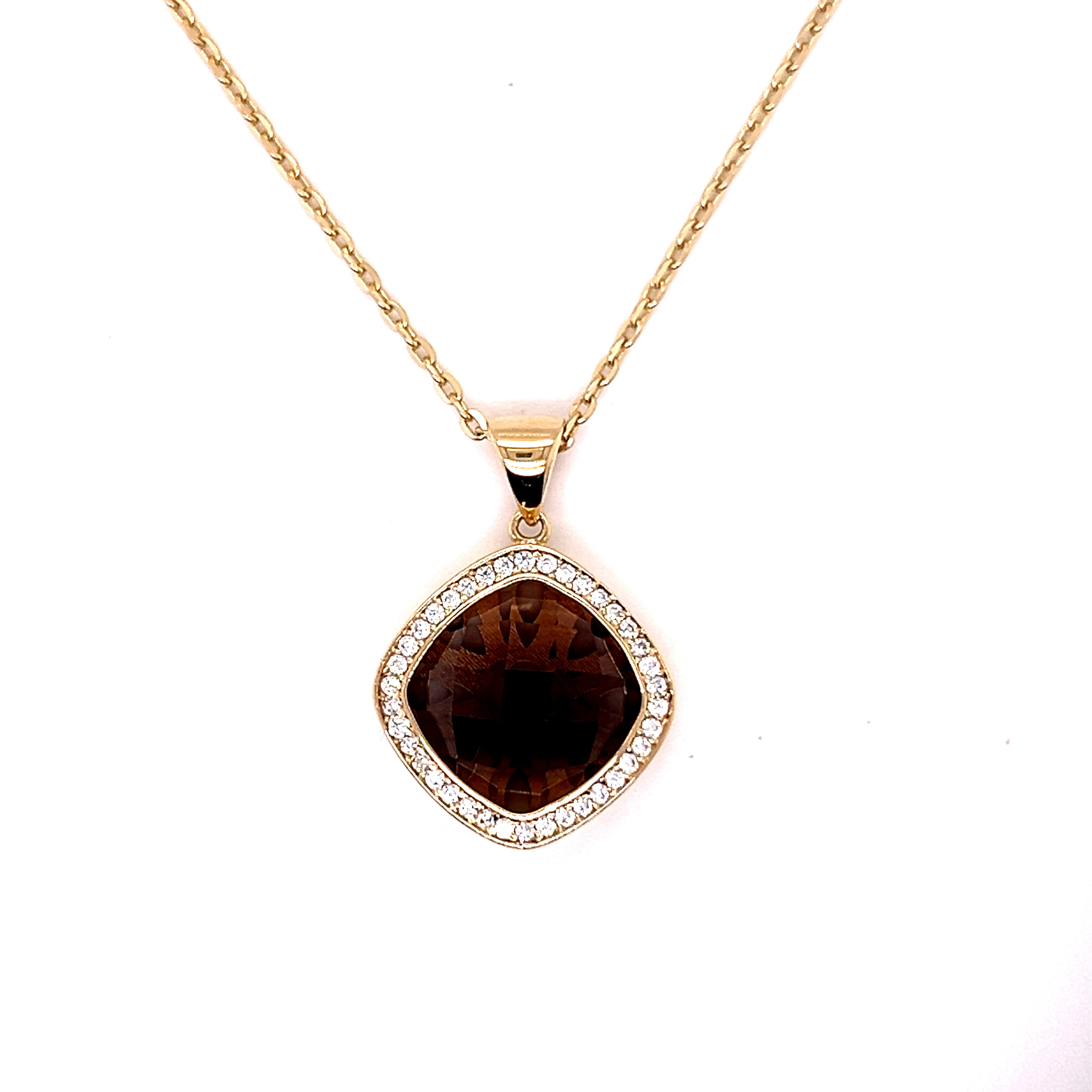 Колие от “Jacklin hugasian” в жълто злато с опушен топаз и циркони.