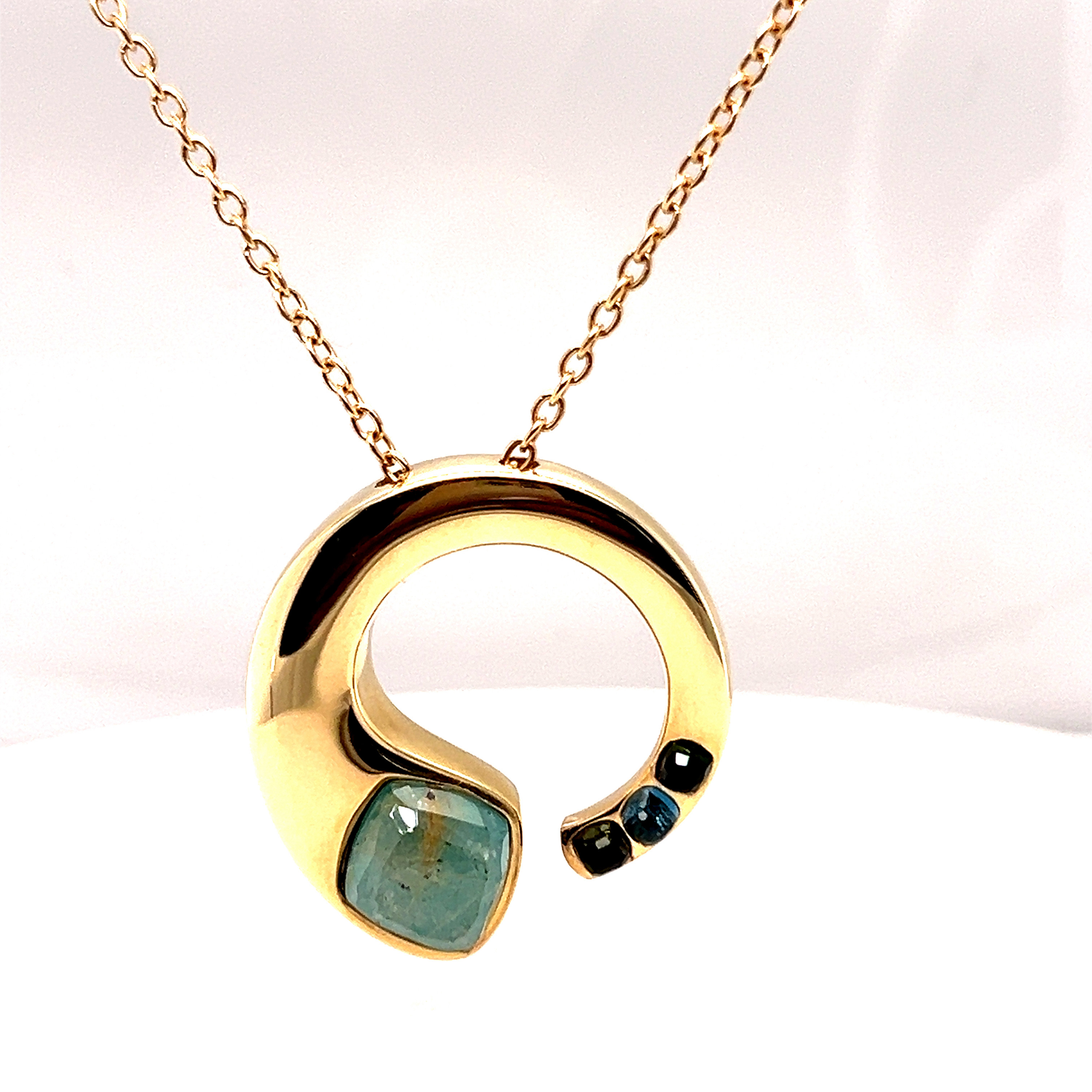 Колие от “Jacklin hugasian” в жълто злато с "Косите на Венера",перидот и топаз