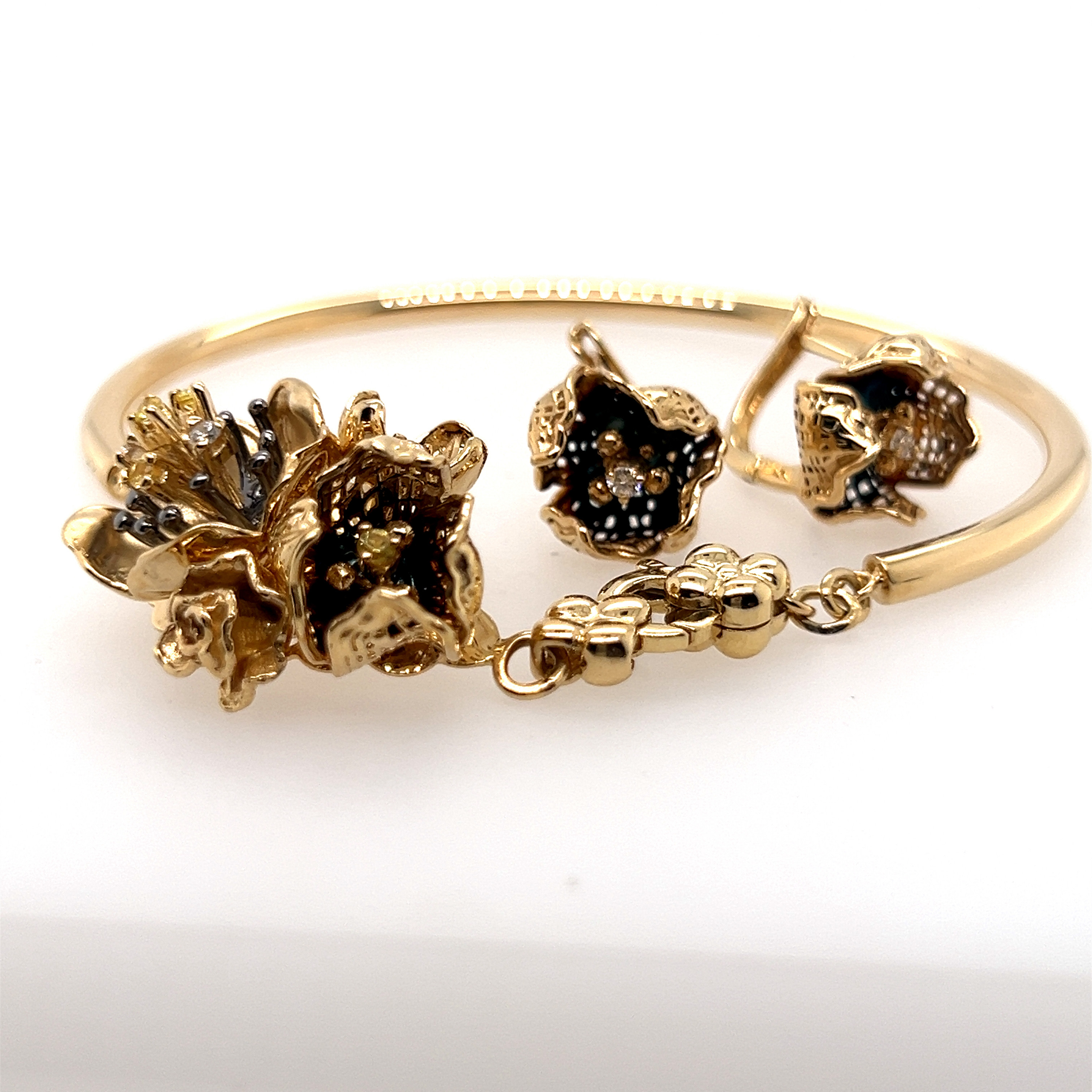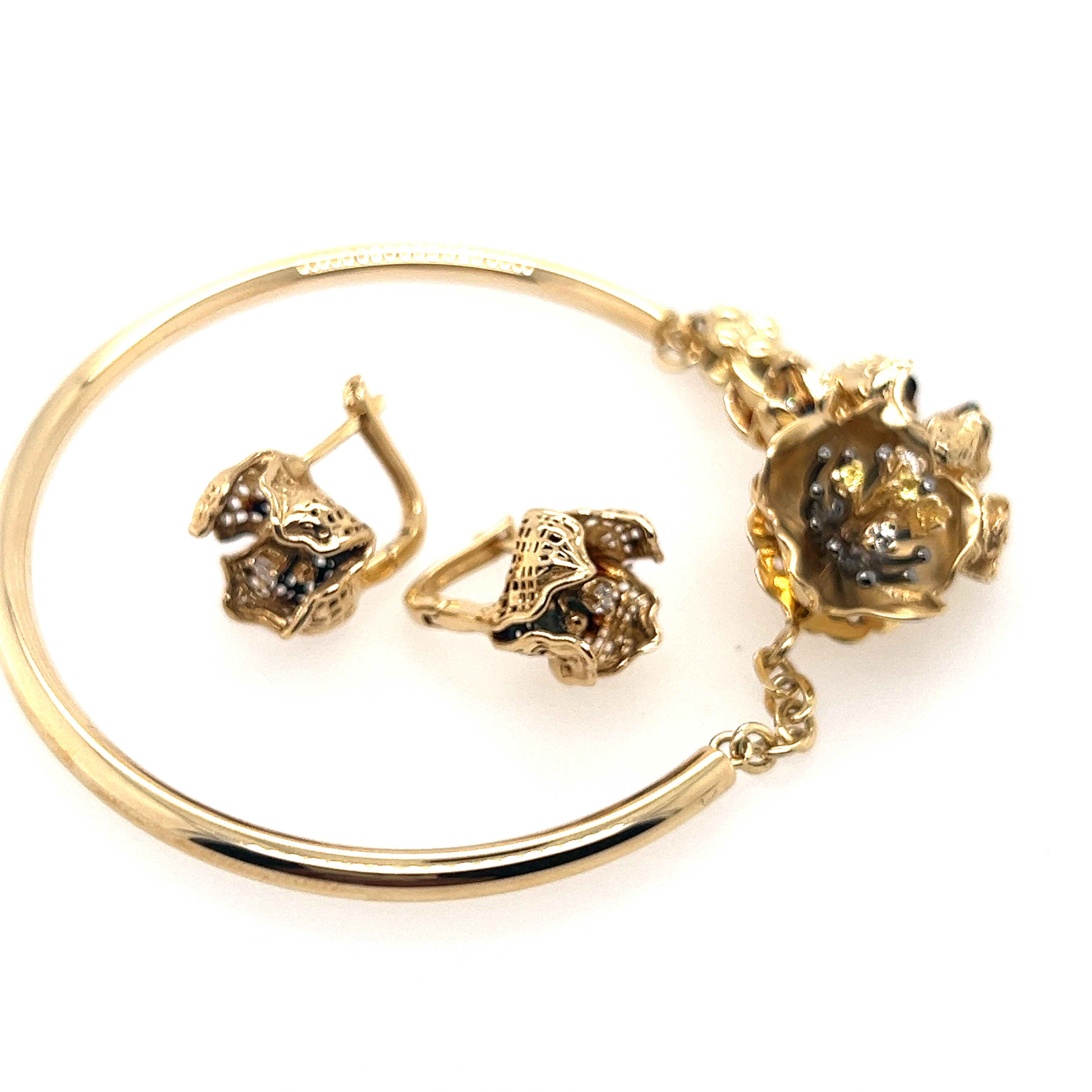 Комплект от “Jacklin hugasian” в жълто злато с диаманти.