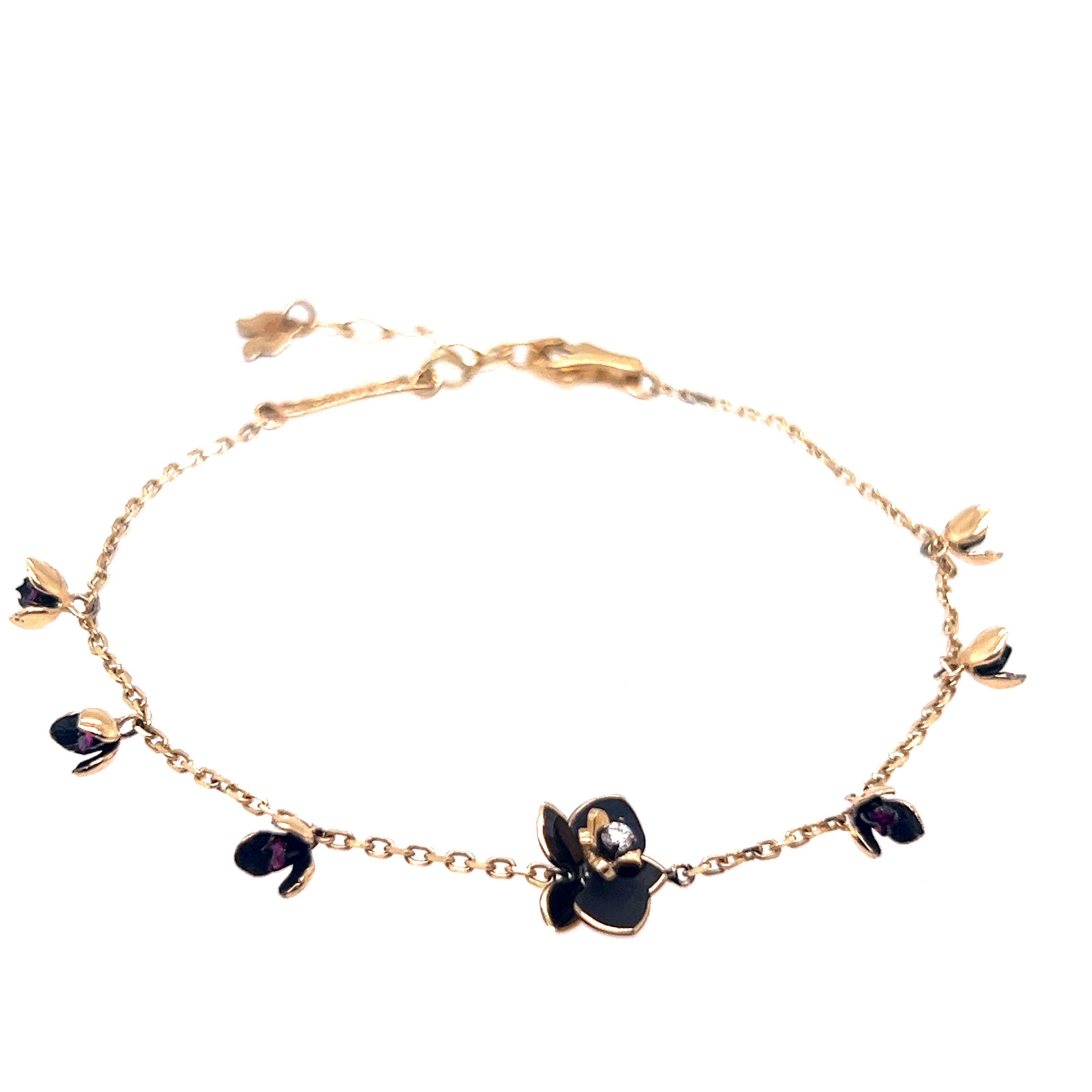 Гривна от “Jacklin hugasian” в жълто и черно злато с диамант и рубин.