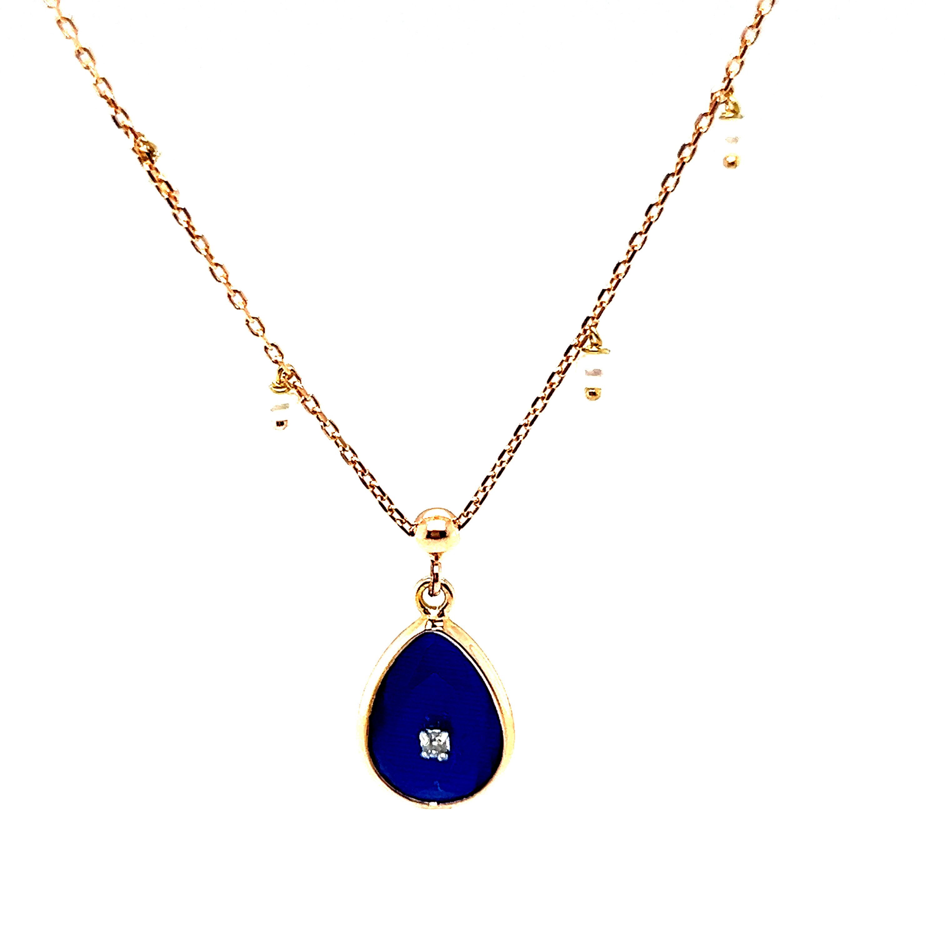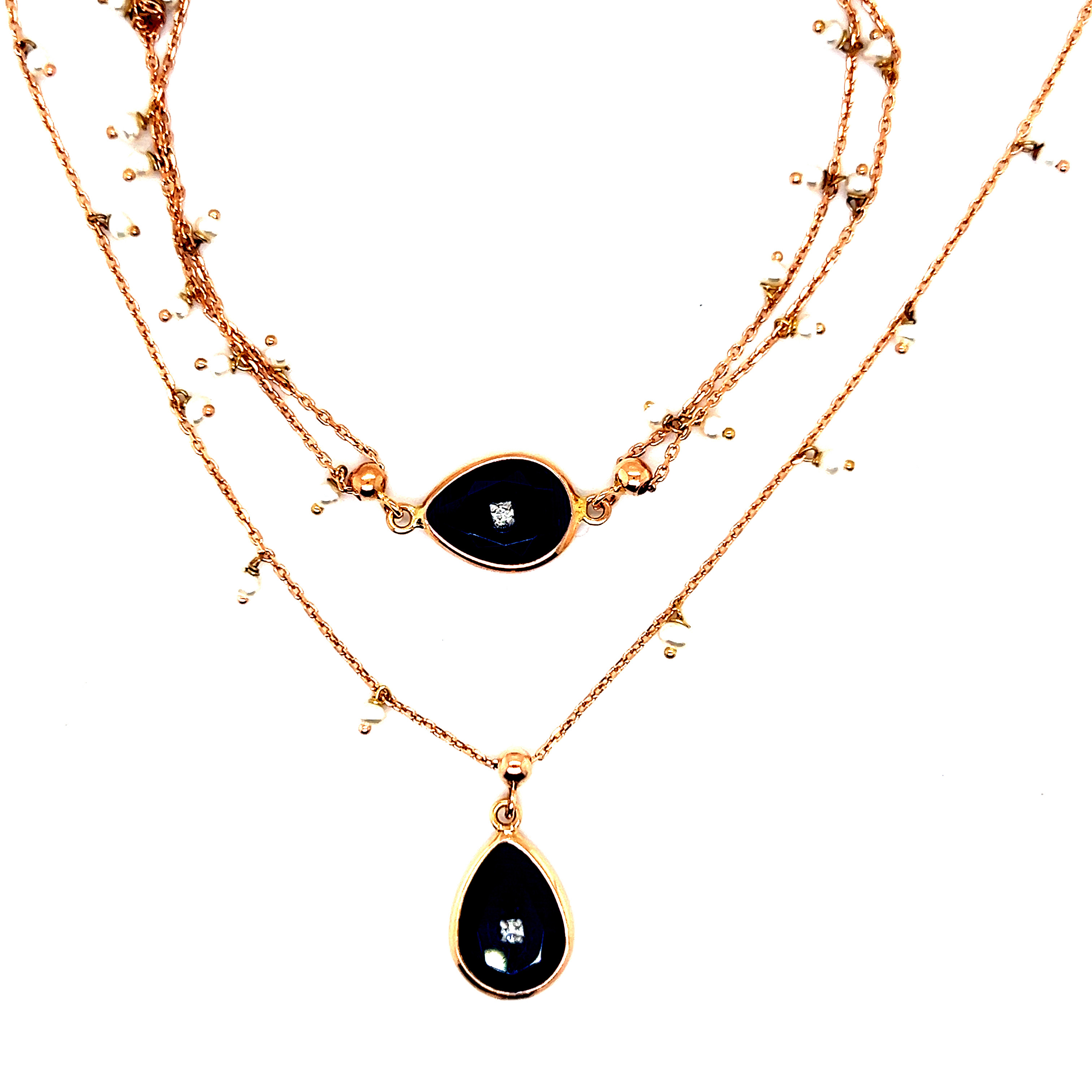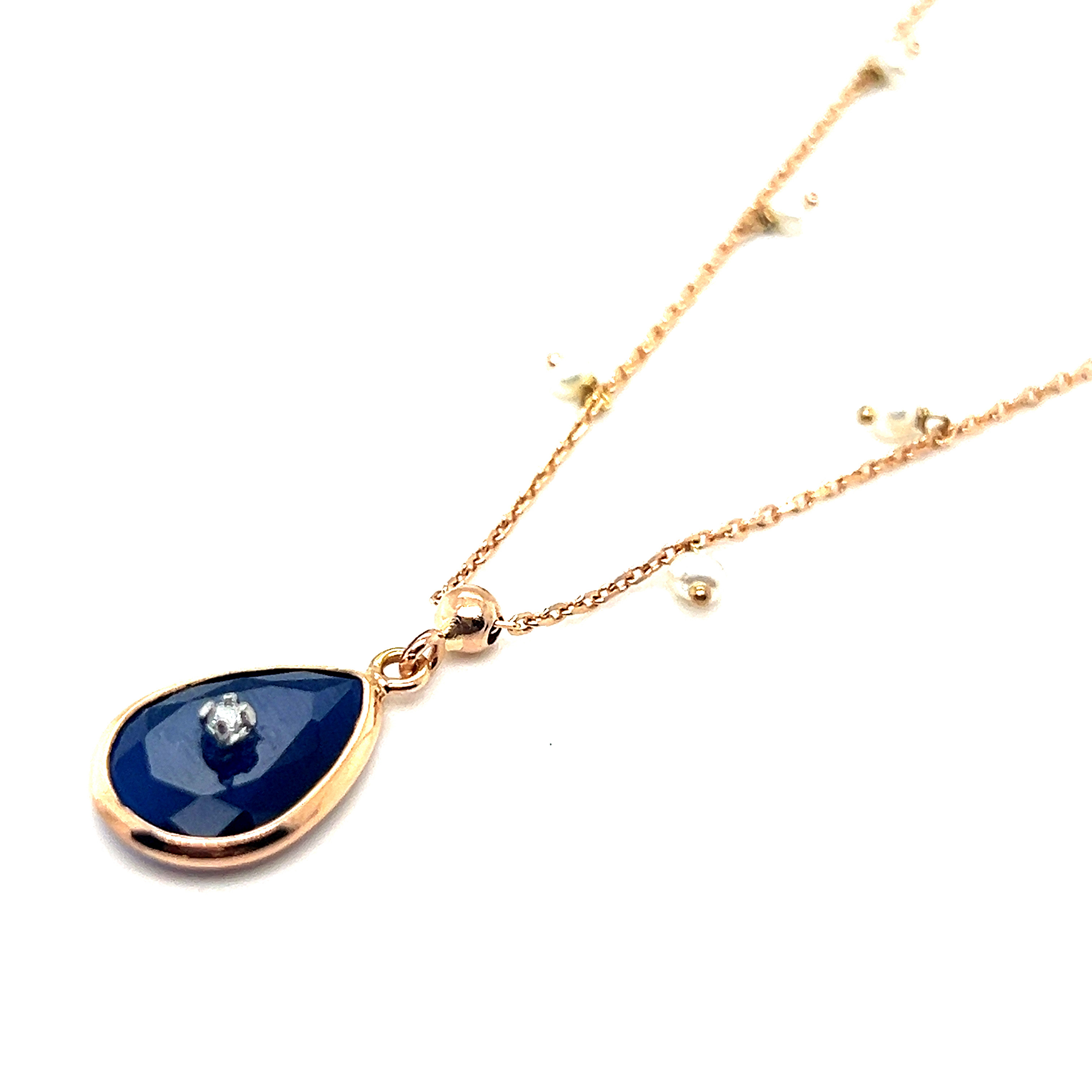 Комплект от “Jacklin ” в жълто злато гланц с цирконии,перла и сапфир. | Jacklin hugasian