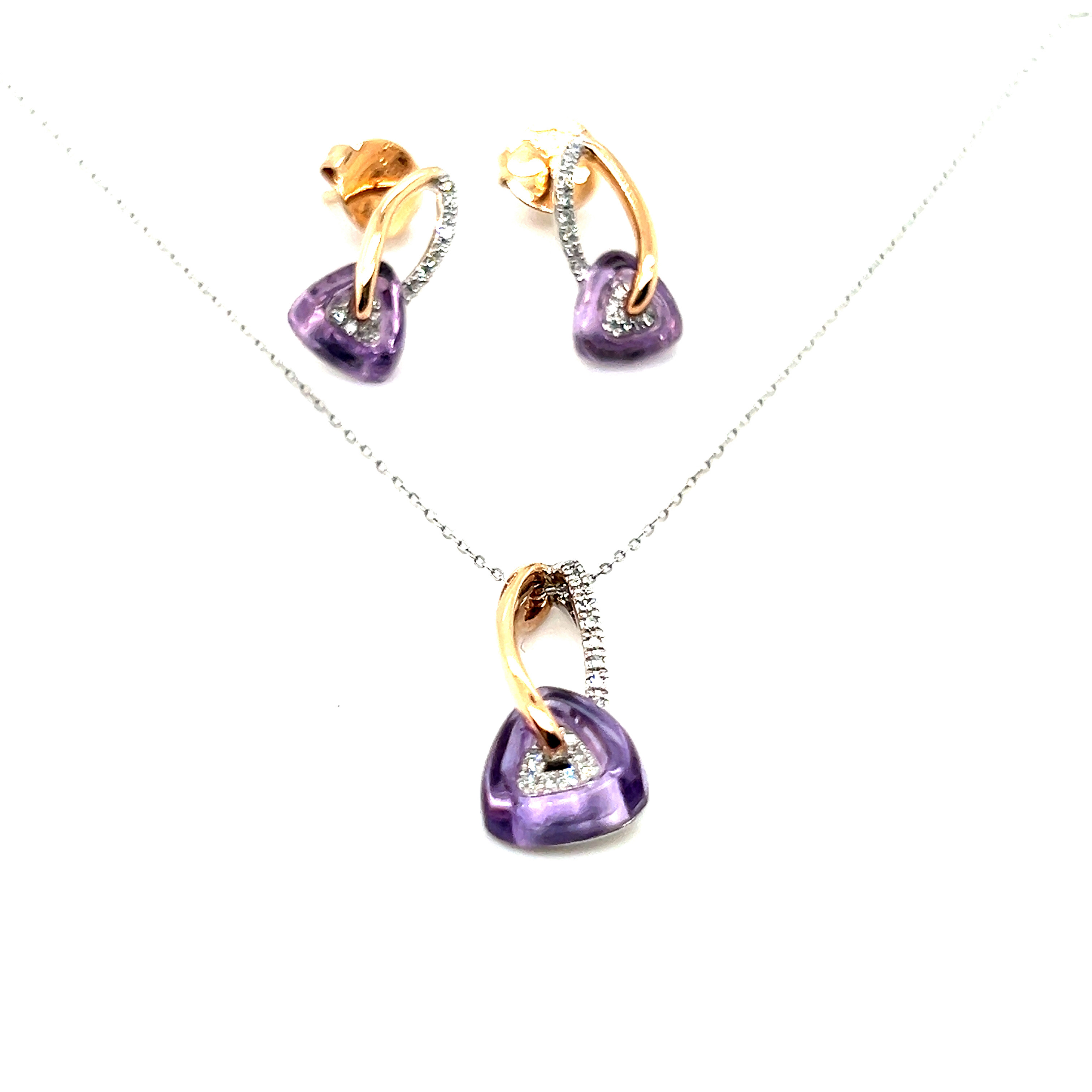 Колие от “Jacklin hugasian” в бяло и розово злато, с аметист и диаманти