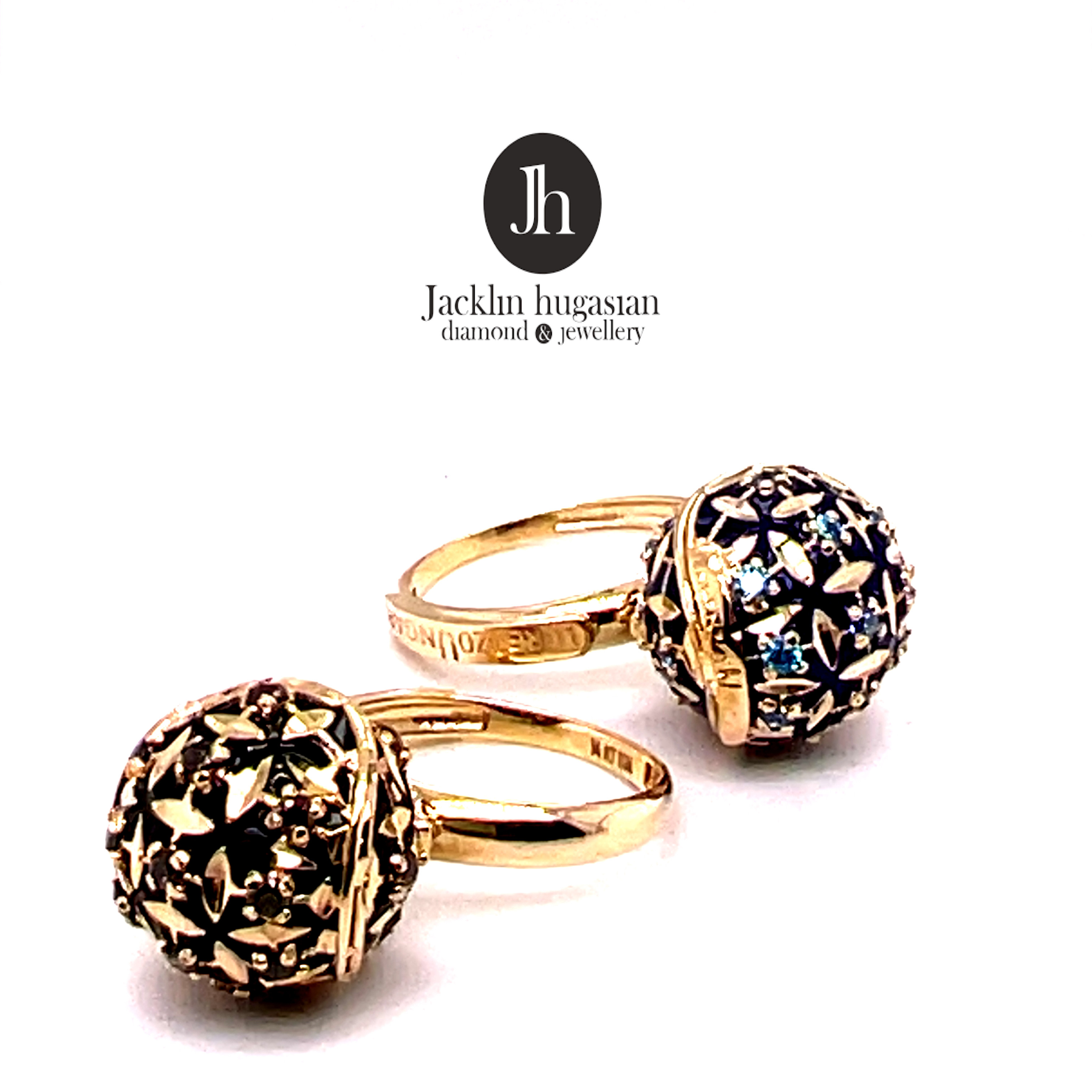Oбеци от "Jacklin hugasian" в жълто злато, топаз и емайл