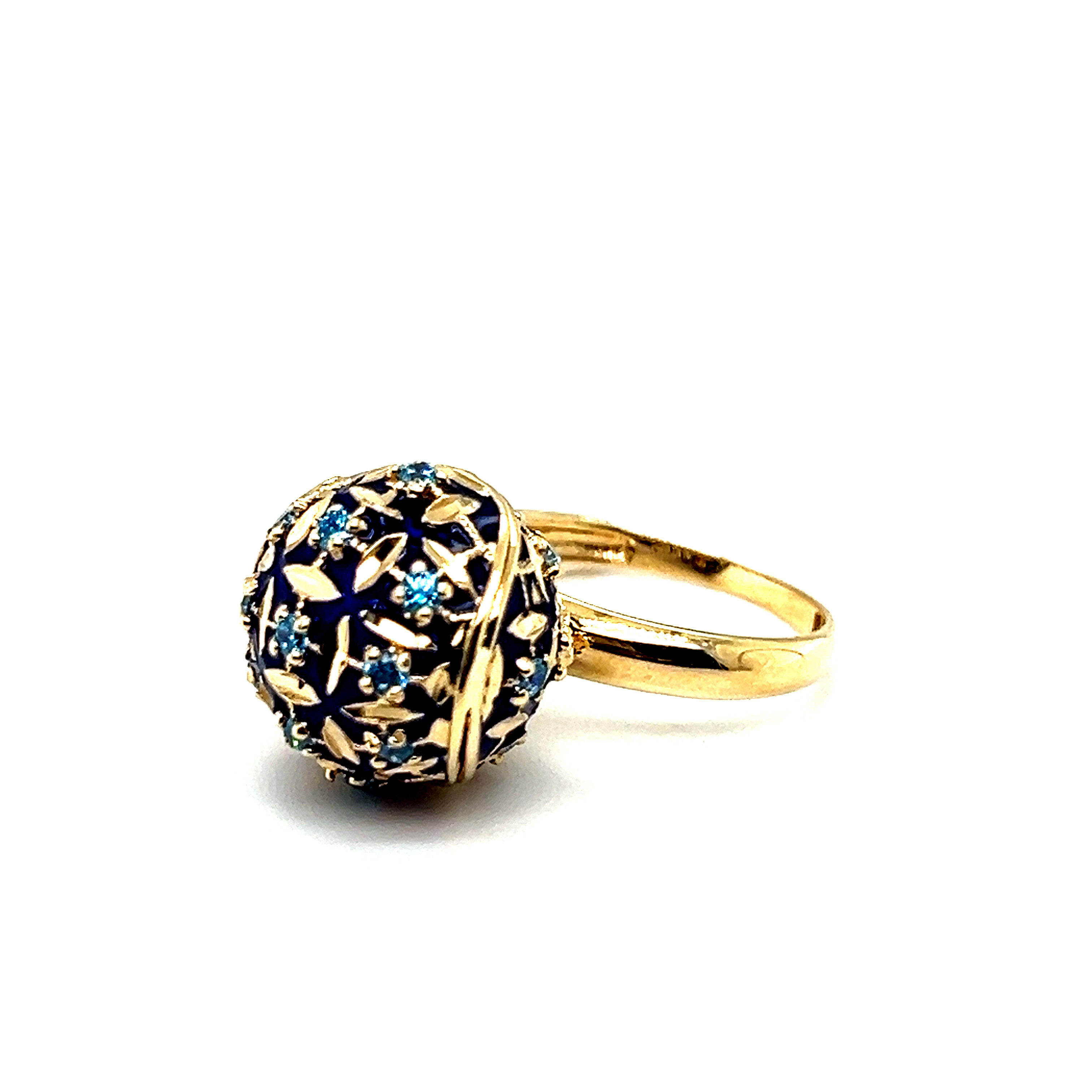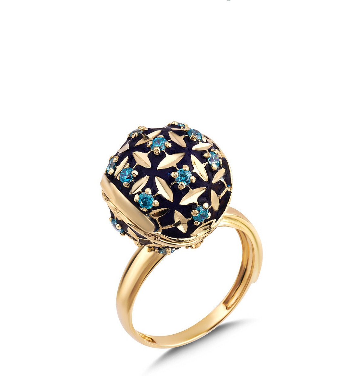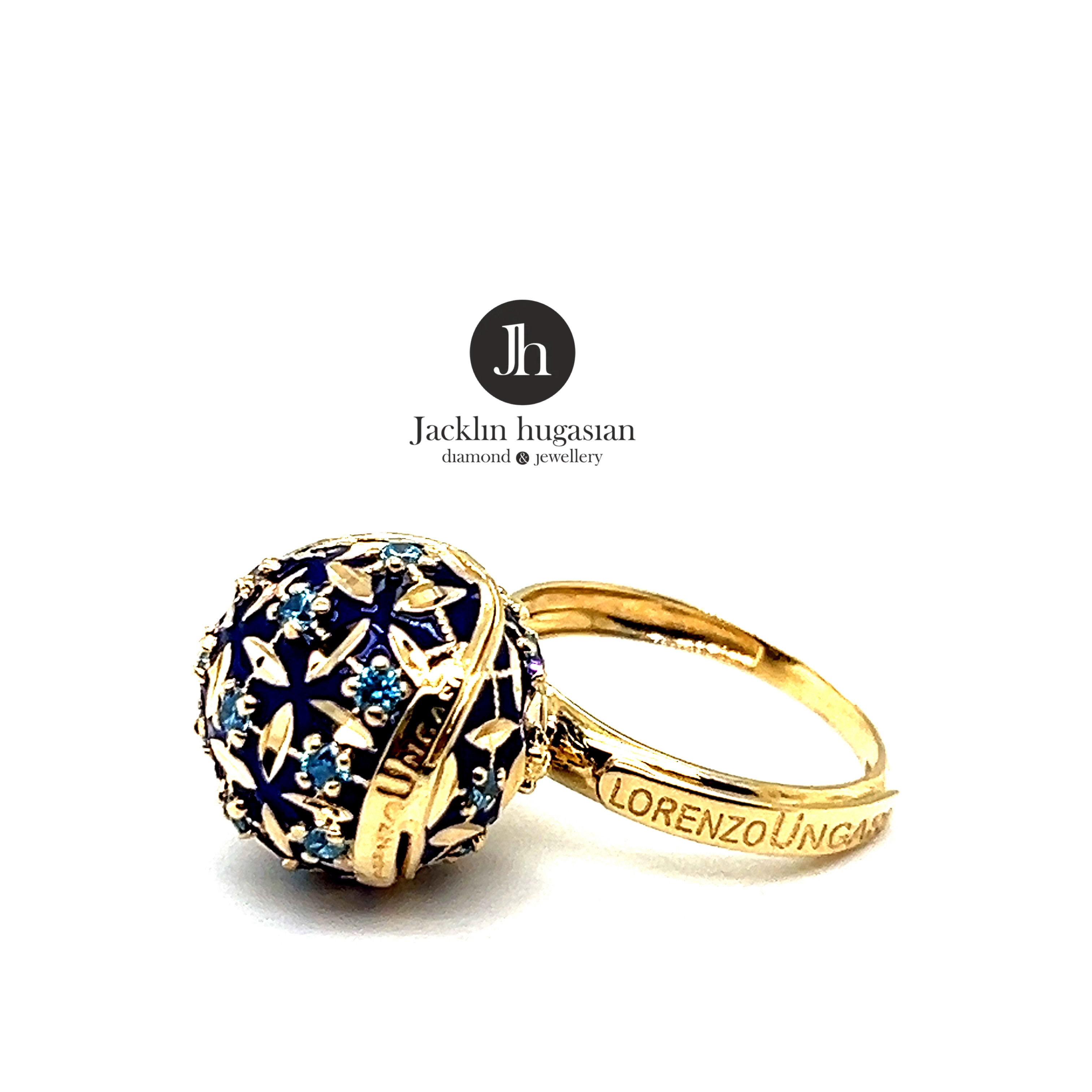 Пръстен от "Jacklin hugasian" в жълто злато с топаз и емайл