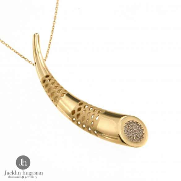 Колие от "Jacklin hugasian" в жълто злато мат гланц с цирконии.