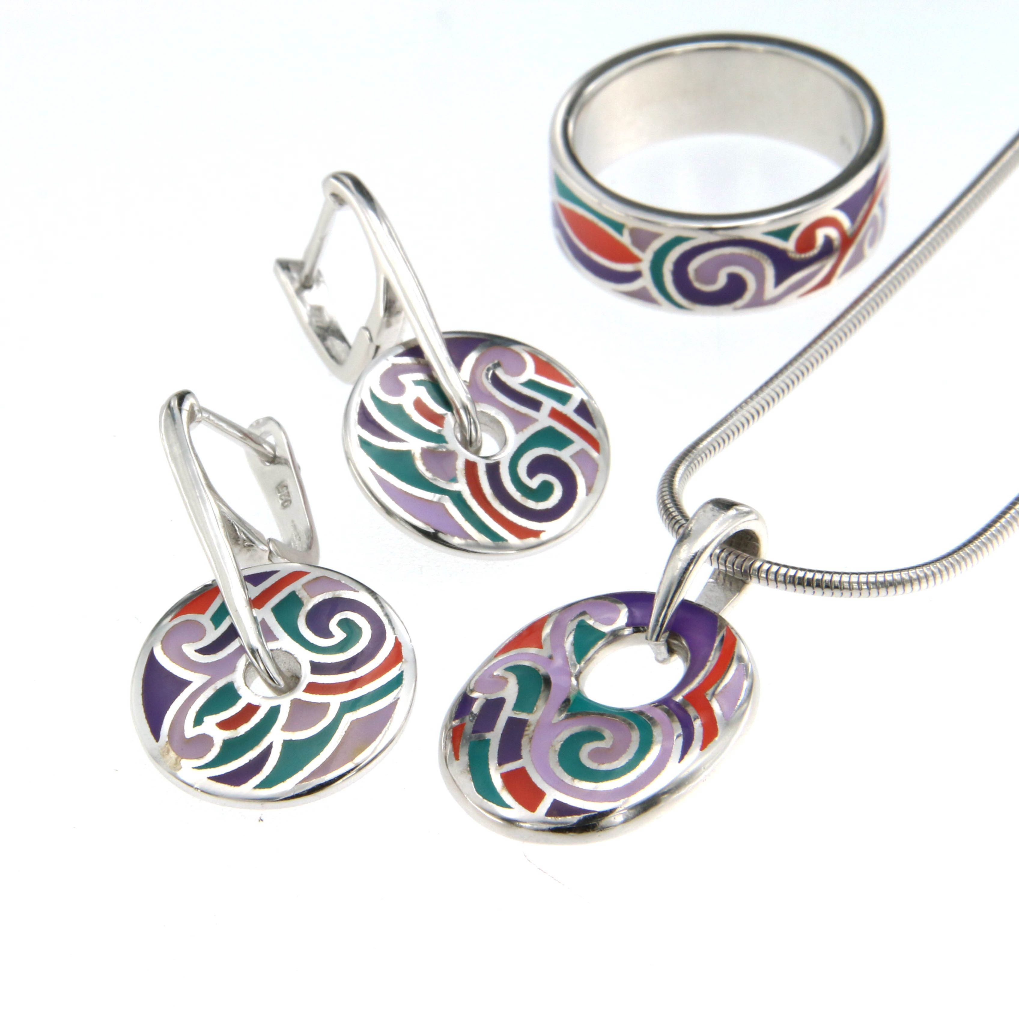 Комплект пръстен и колие от "Jacklin " в сребро с цветен емайл | Jacklin hugasian