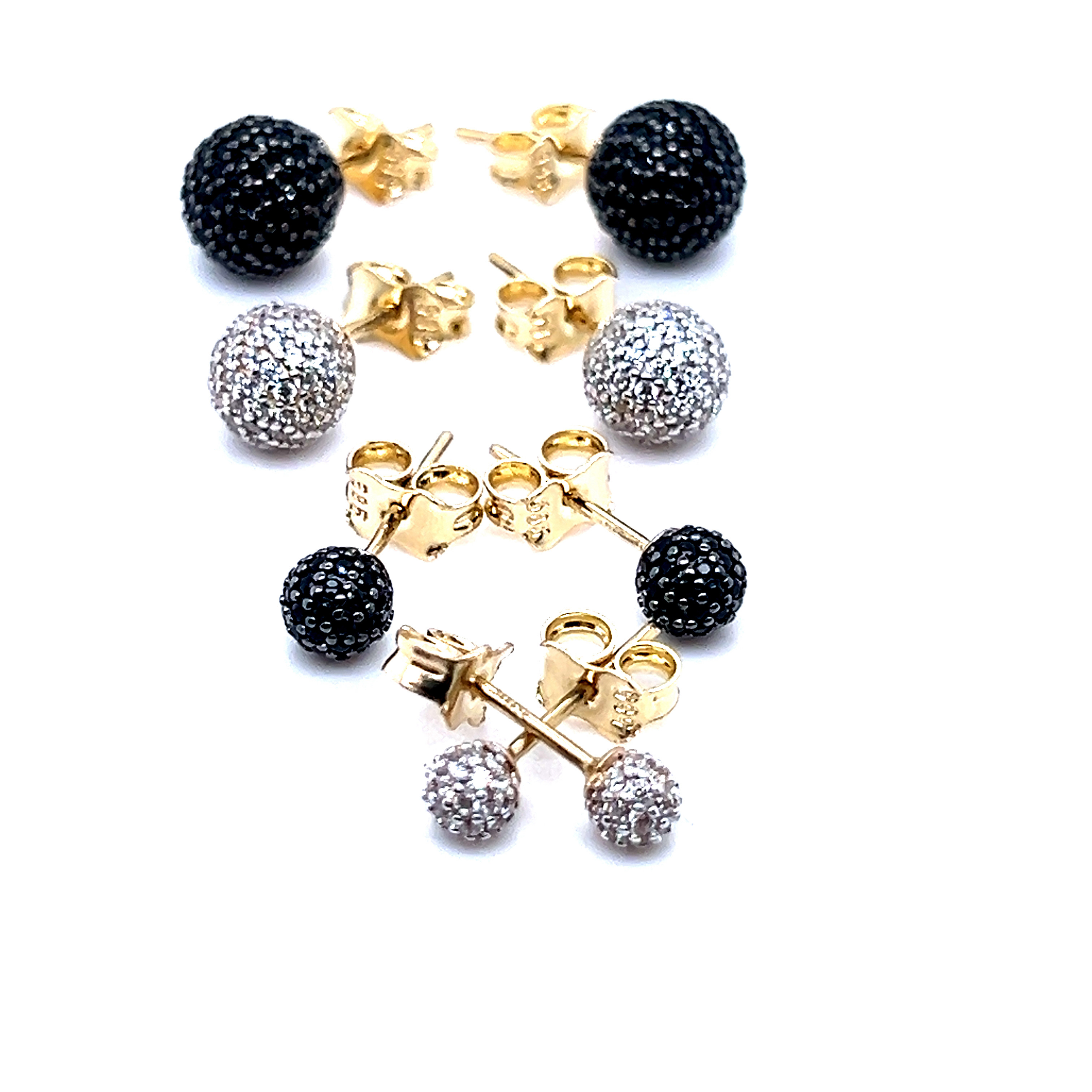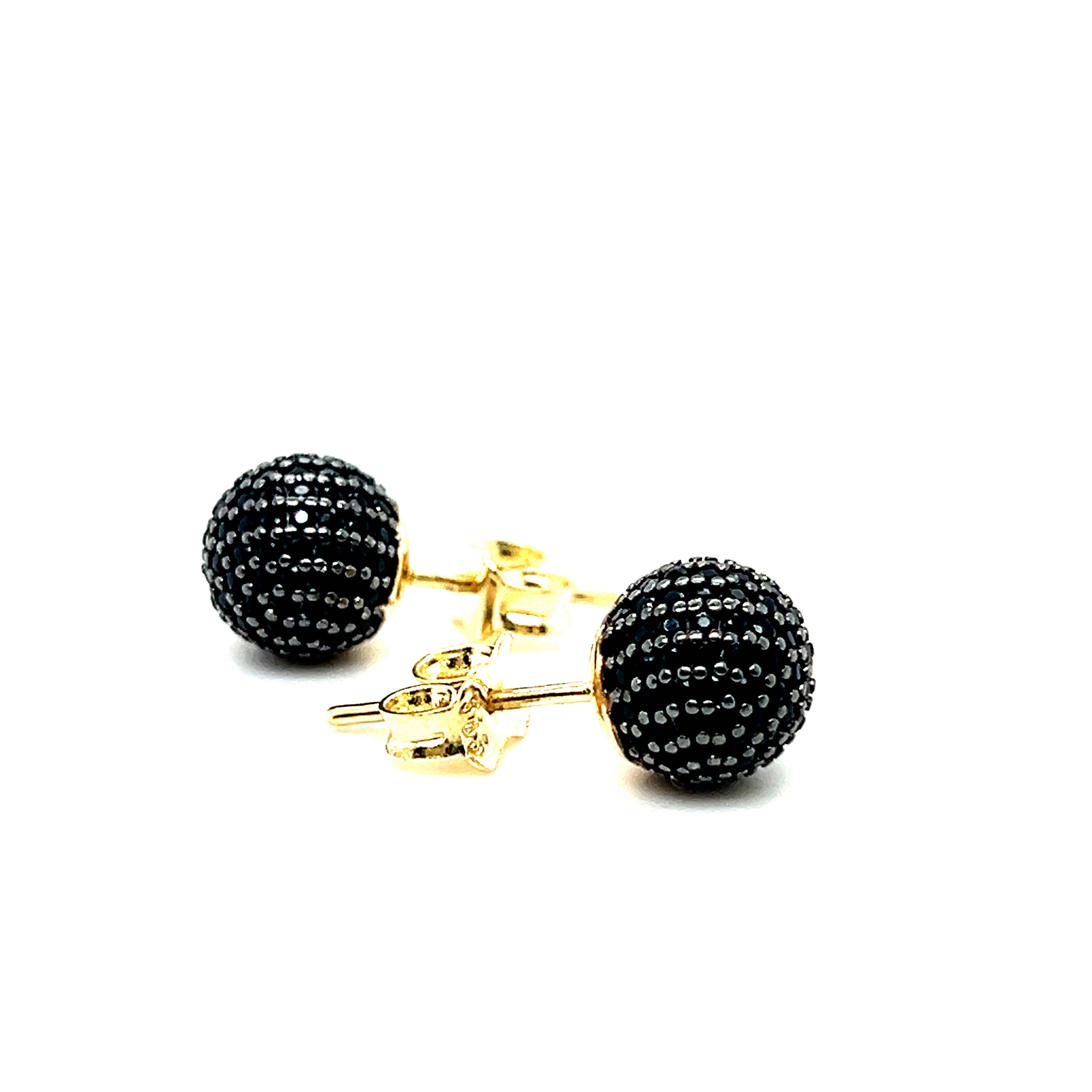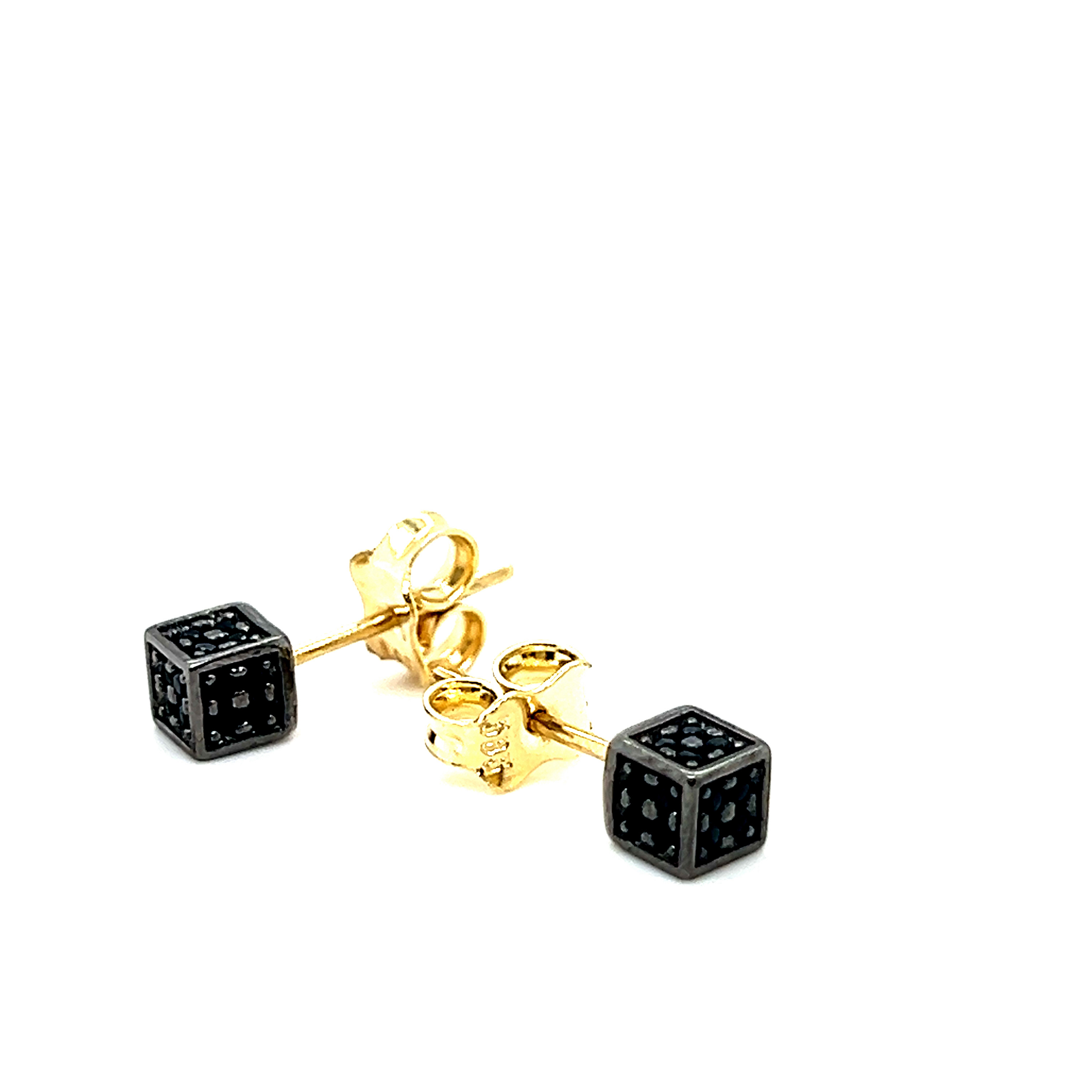 Обеци от “Jacklin hugasian” в жълто златo с оникси или циркони.