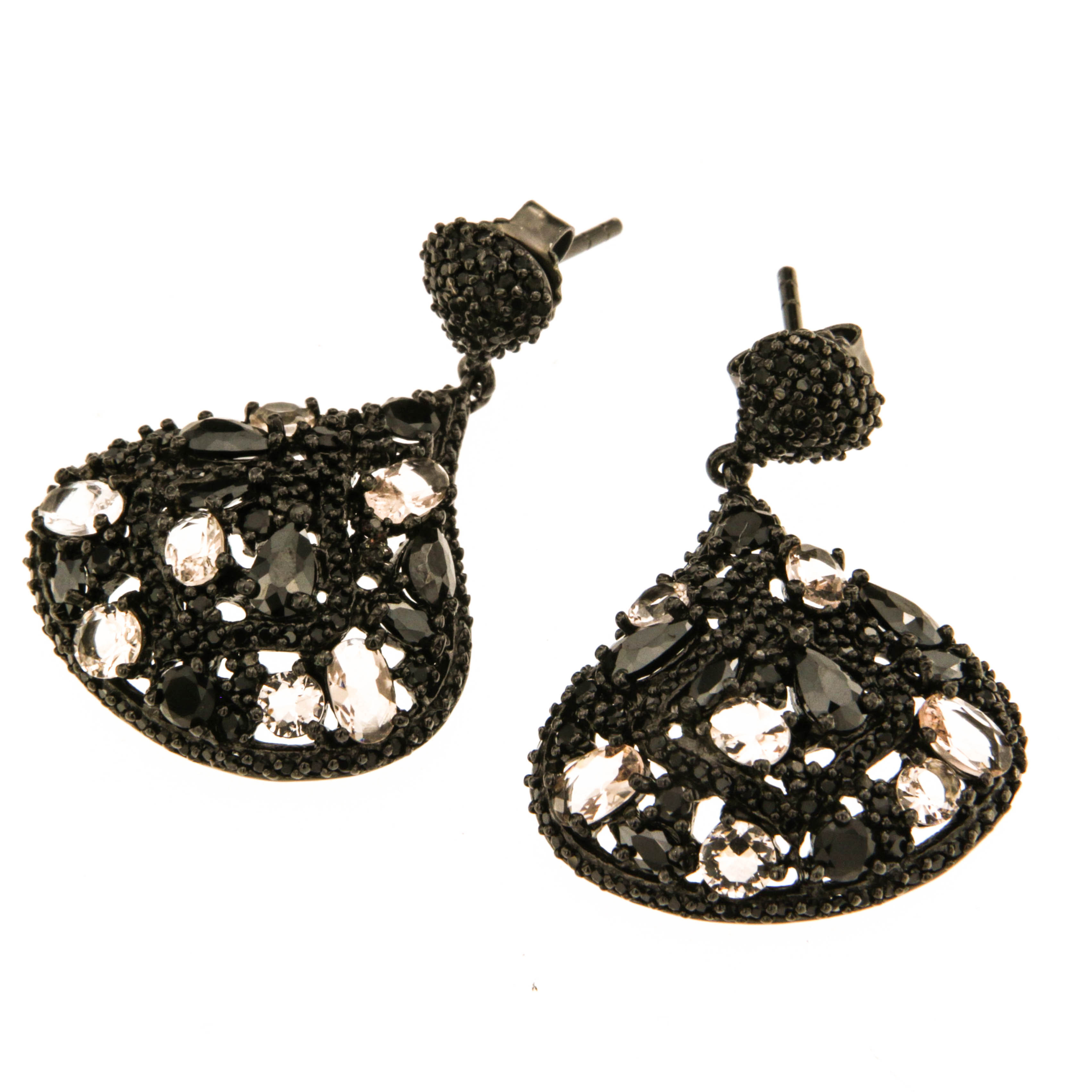 Обеци от "Jacklin hugasian" в сребро с черен родий, топаз и черен оникс.