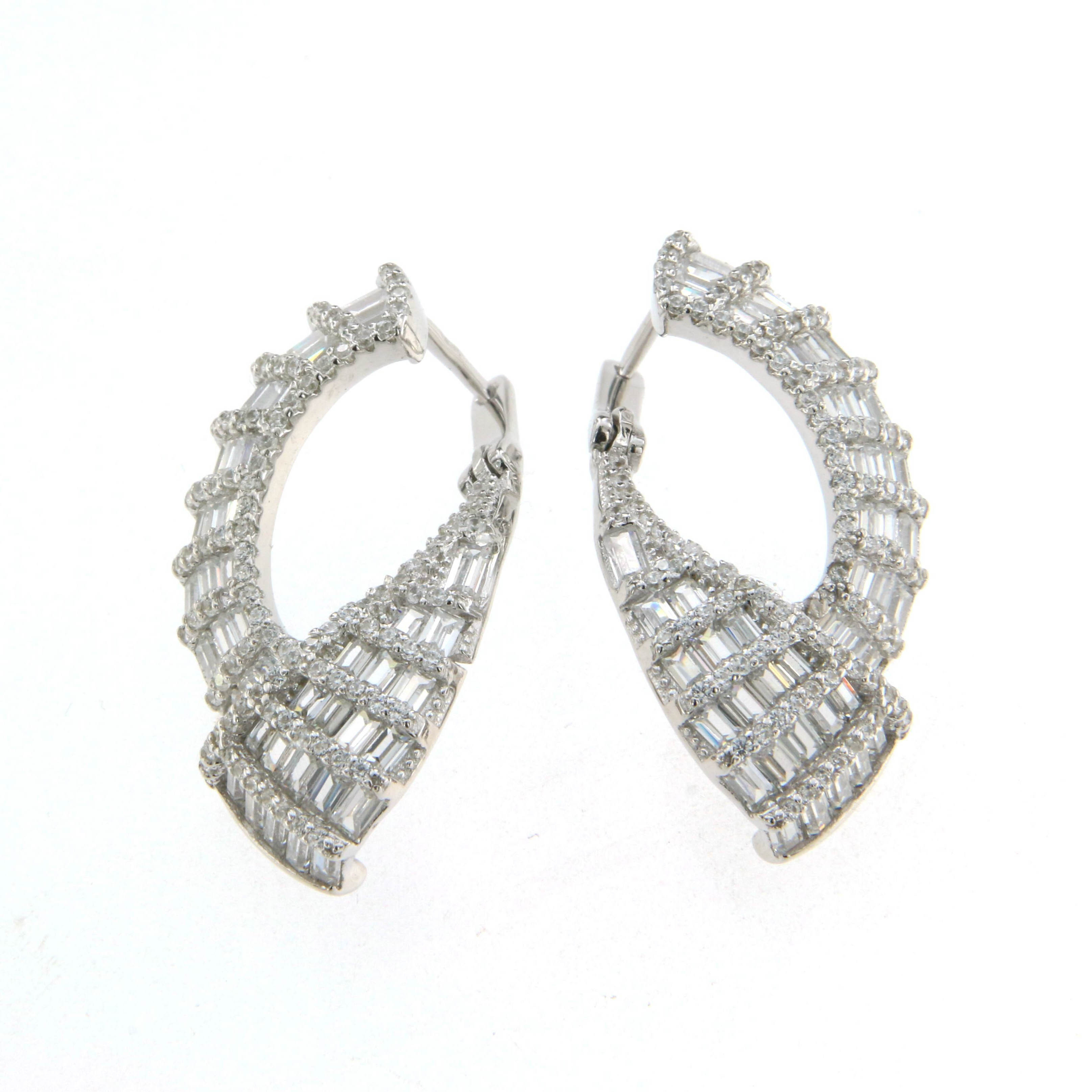 Обеци от “Jacklin hugasian” в сребро с цирконии. Дължина обеци 3.00 см., широчина 1.5 см.