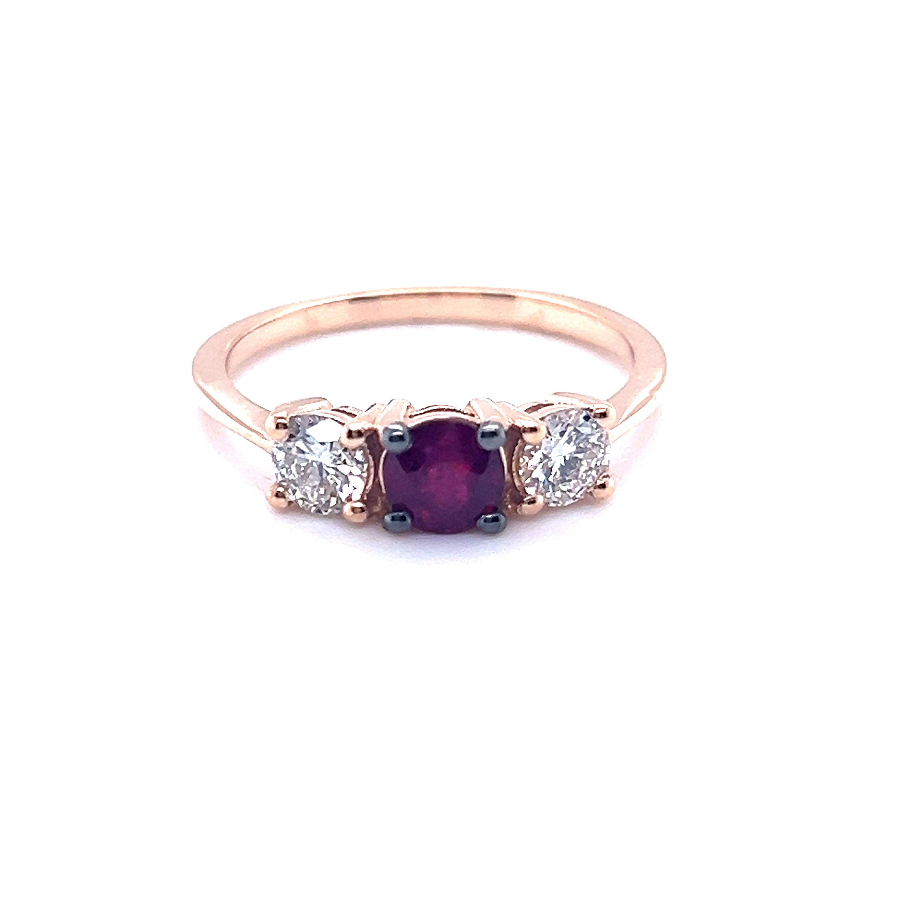 Пръстен от "Jacklin hugasian" в розово злато с рубин и диаманти.