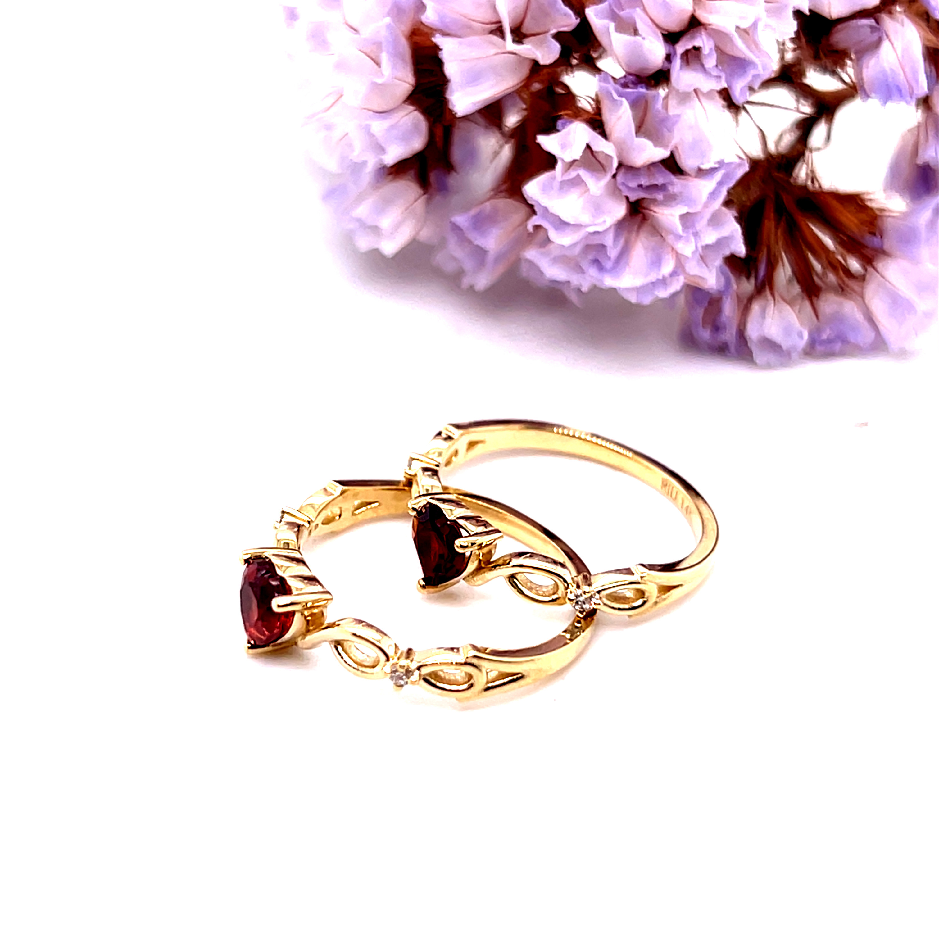 Пръстен от "Jacklin hugasian" в жълто злато с гранат и диаманти.