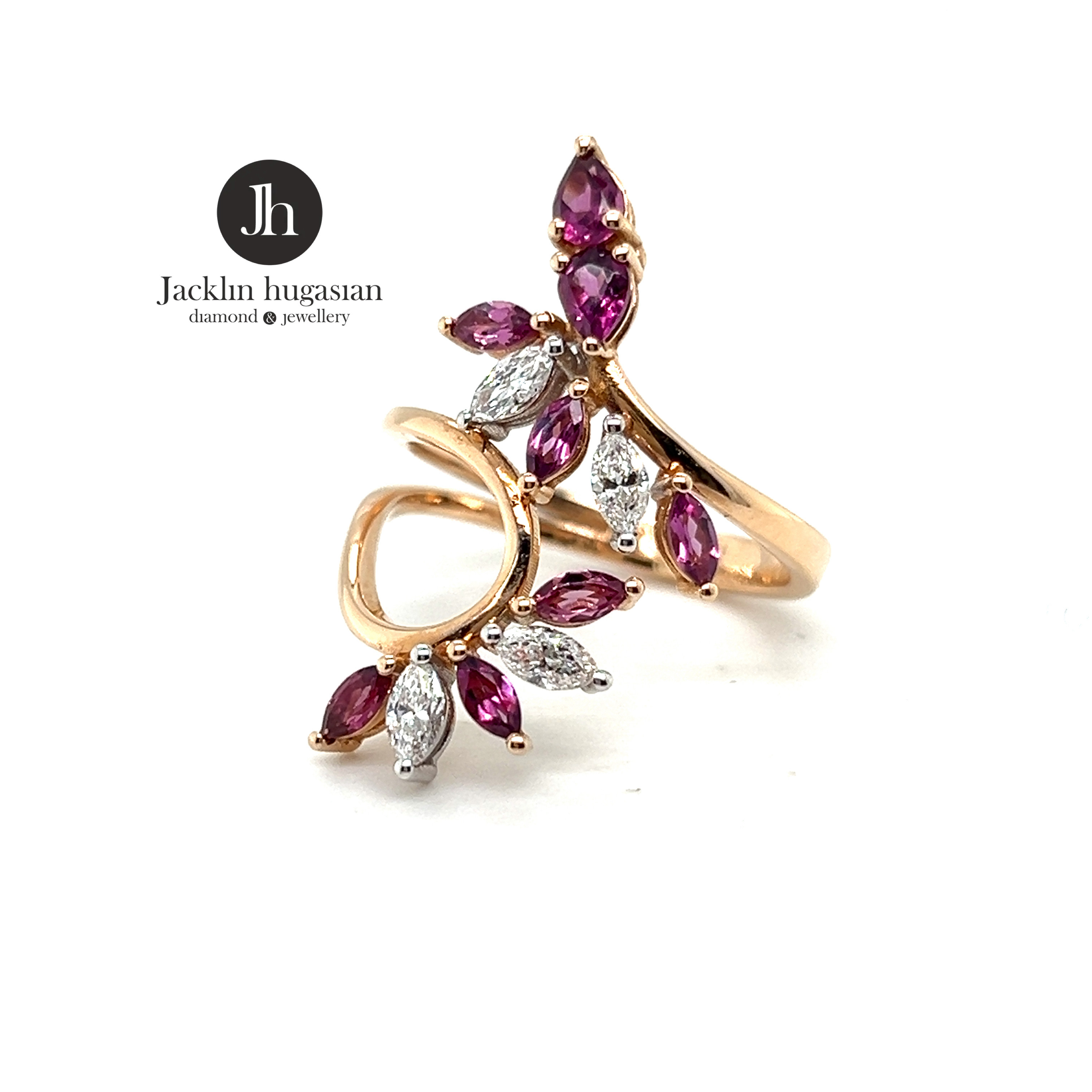 Пръстен от "Jacklin hugasian" в розово злато с турмалин и диаманти.