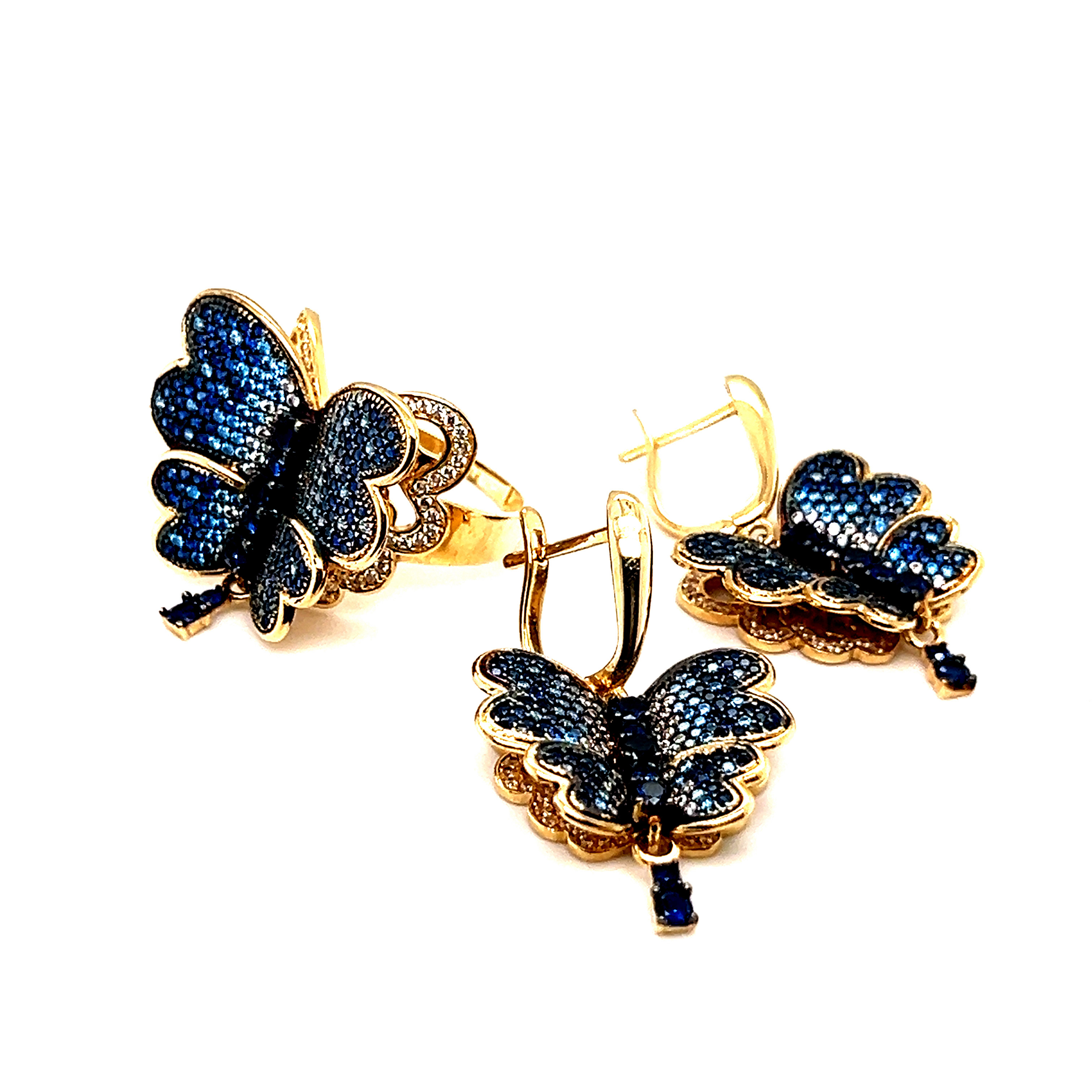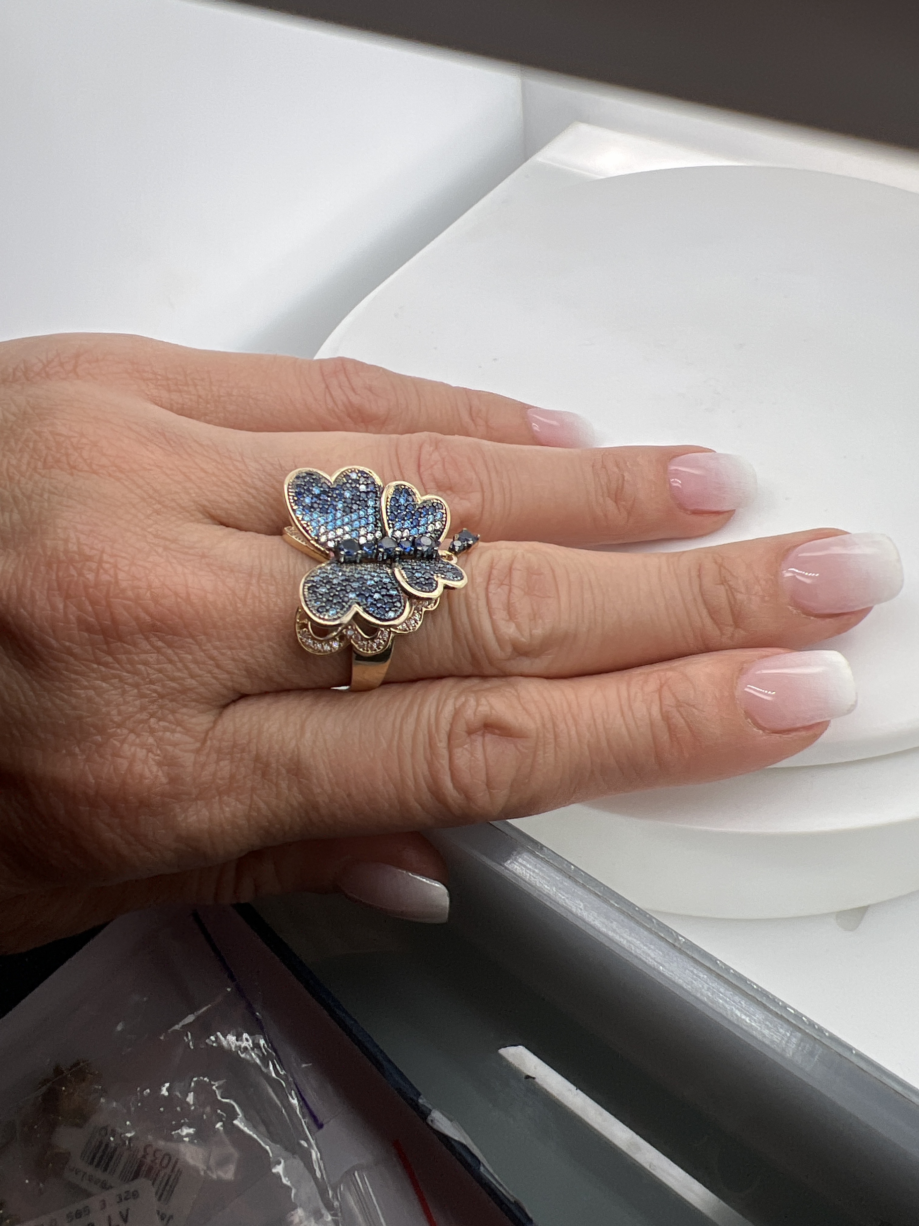 Пръстен от “Jacklin hugasian” в жълто злато със синтетичен сапфир и цирконии