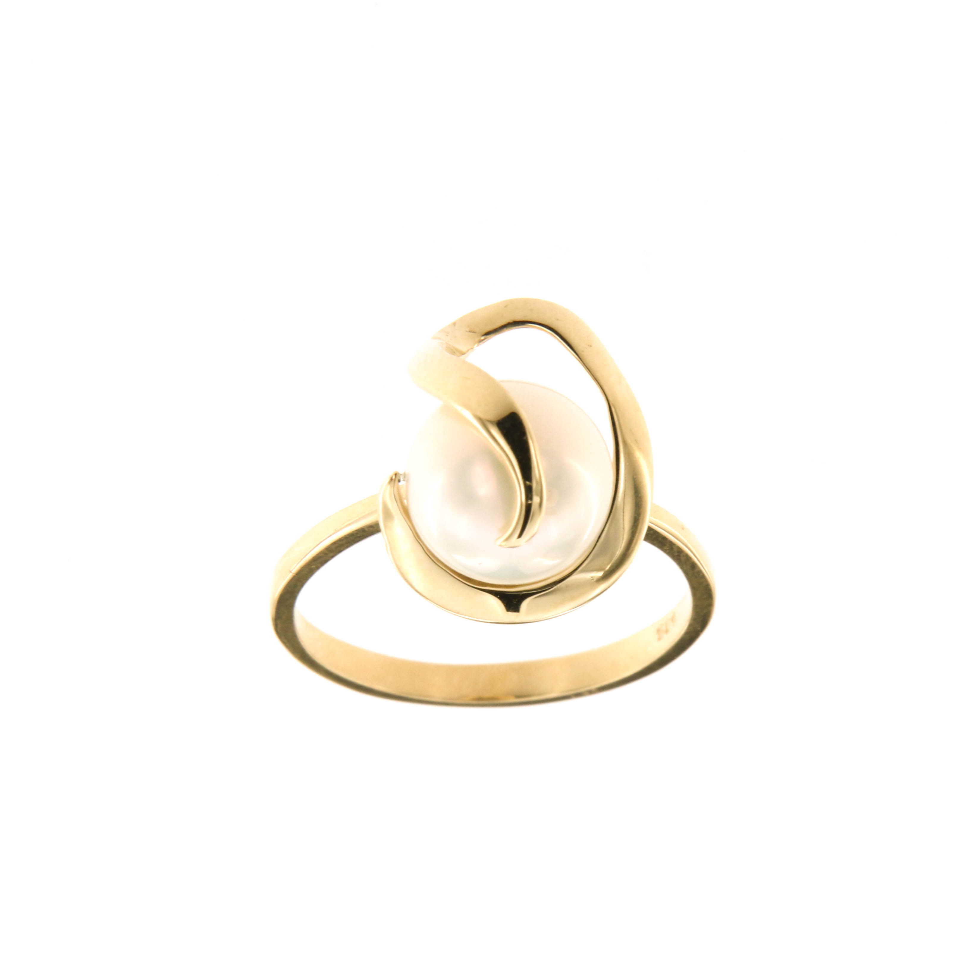 Пръстен от "Jacklin hugasian" в жълто злато гланц с култивирана бяла перла.