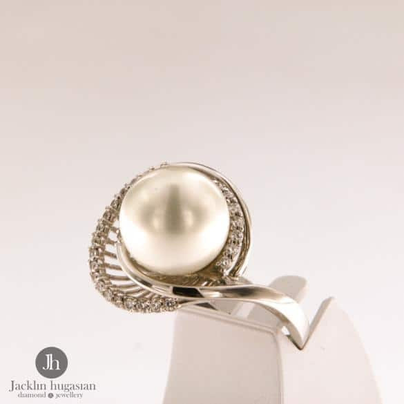 Пръстен от "Jacklin hugasian" с цирконии и култивирана бяла перла. Проба : 925 Размер : N52